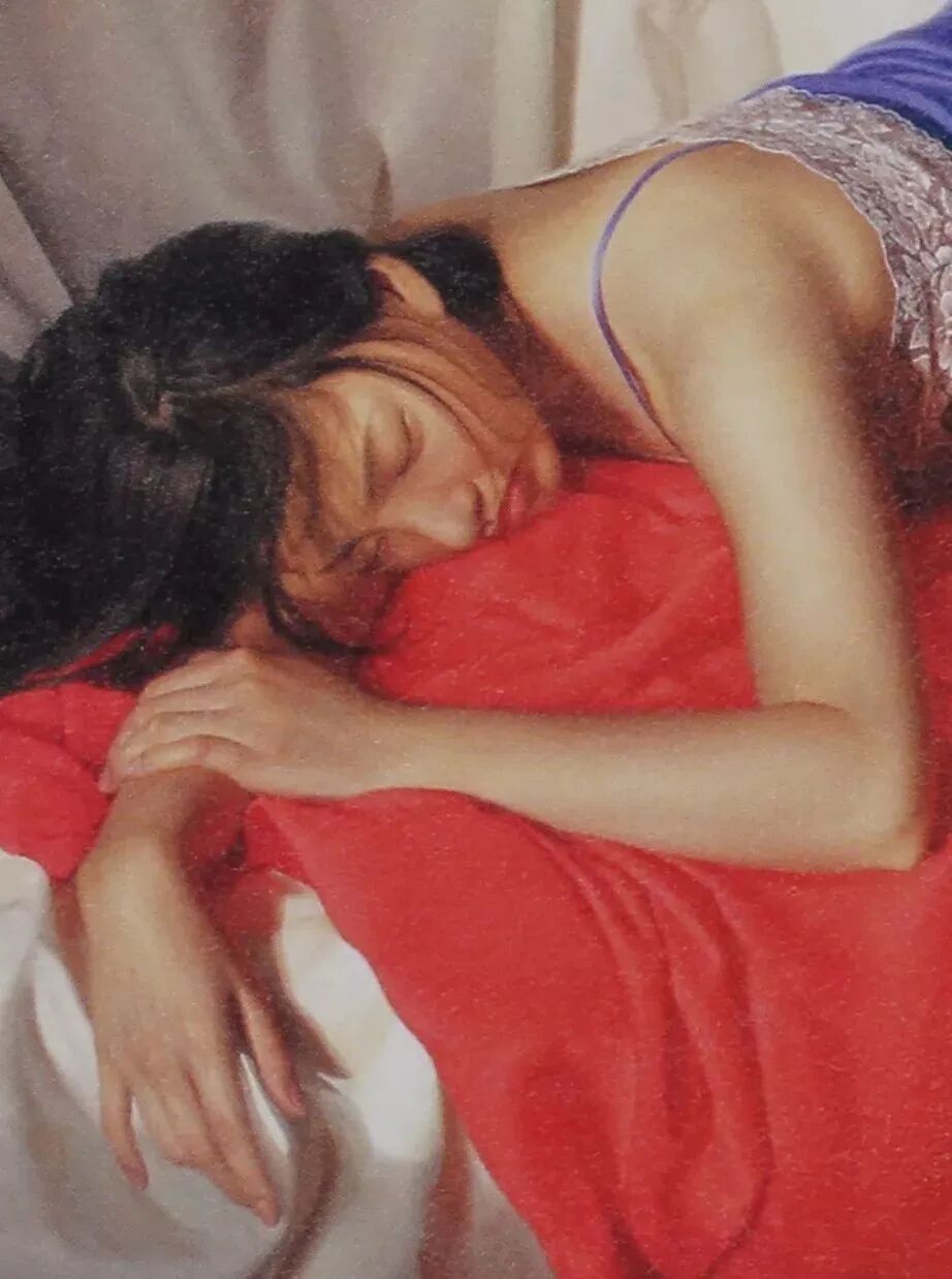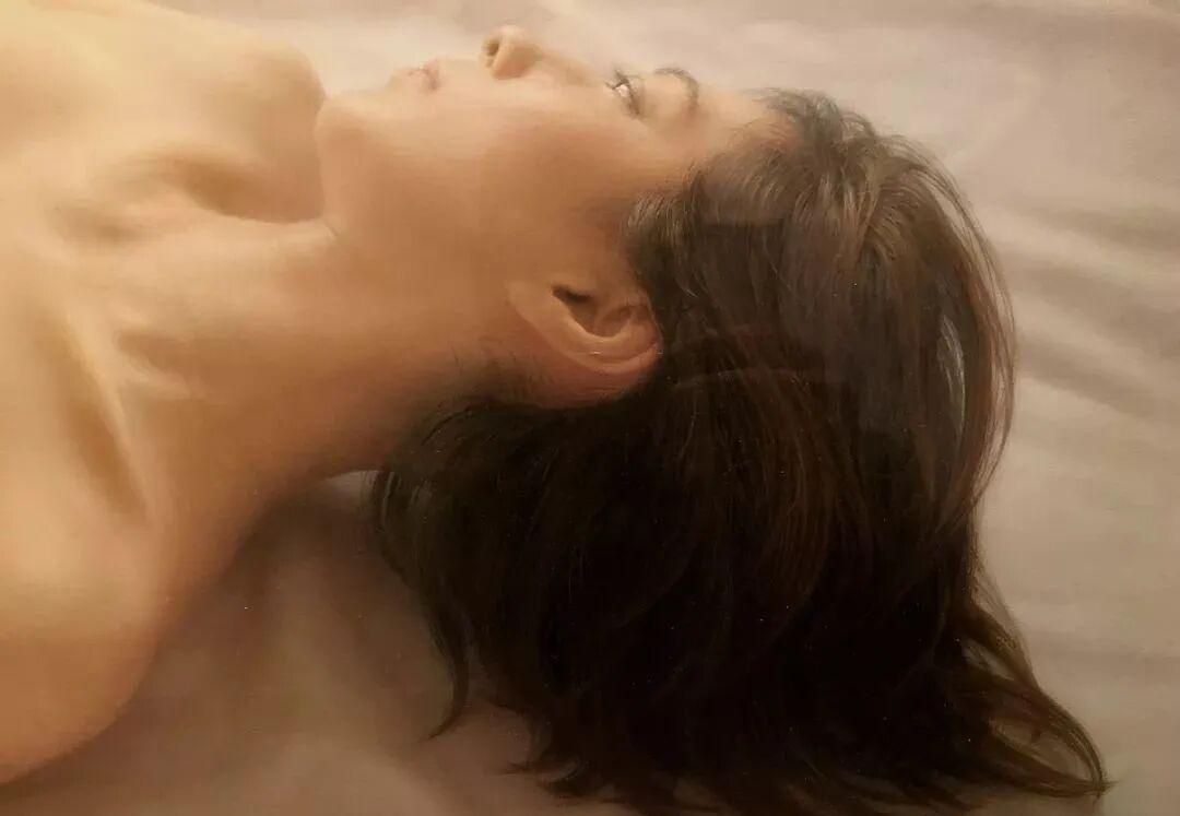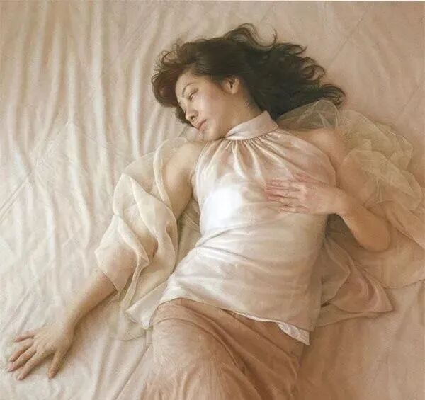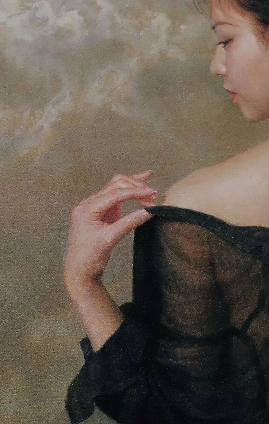 岛村信之的人体油画作品,与国内的超写实油画大师杨飞云、李贵君、靳尚谊等相比,在细腻程度上或有不及,但却有一种别样的美感。有一种虚幻、神秘的色彩。