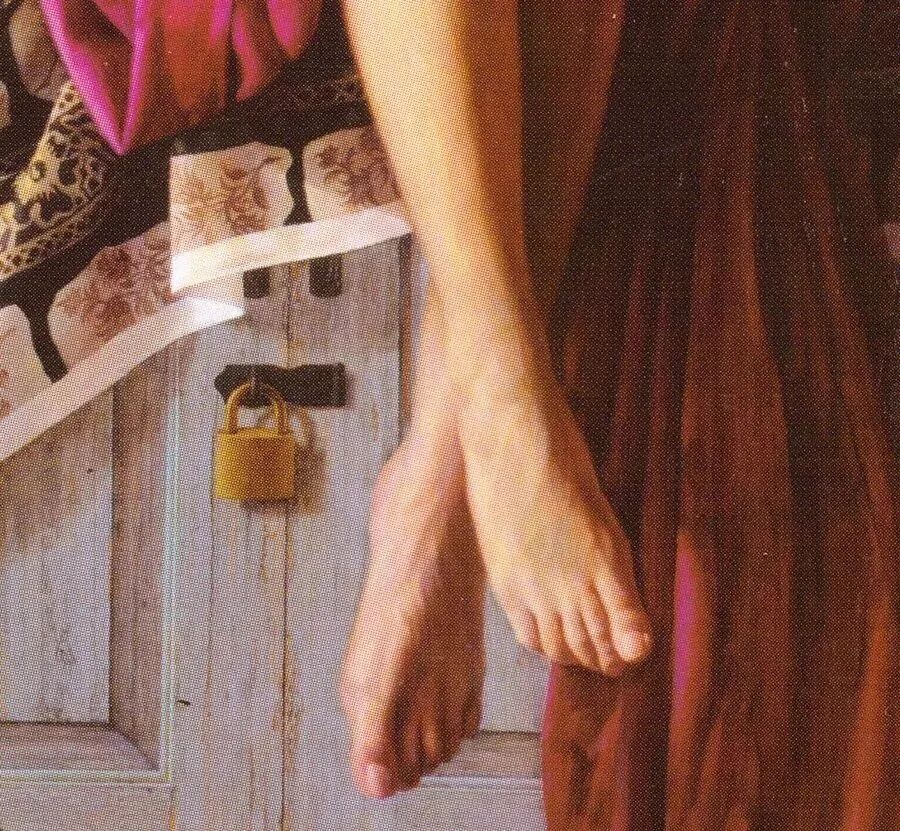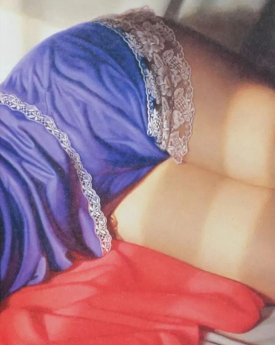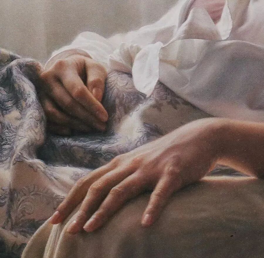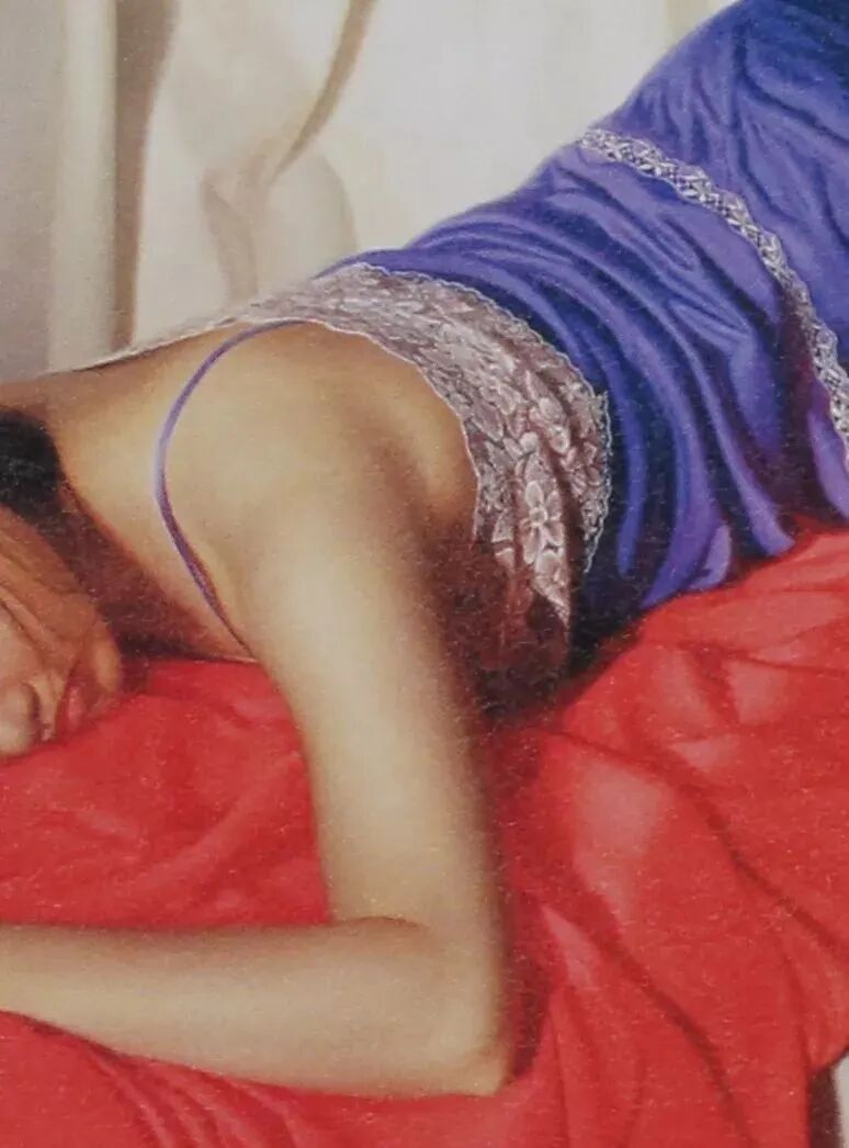 岛村信之的人体油画作品,与国内的超写实油画大师杨飞云、李贵君、靳尚谊等相比,在细腻程度上或有不及,但却有一种别样的美感。有一种虚幻、神秘的色彩。