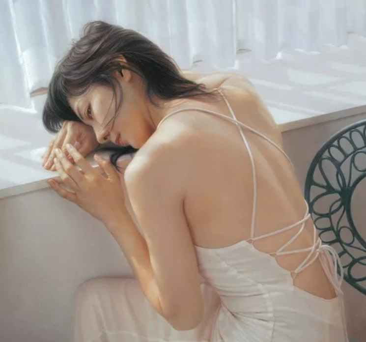 岛村信这些作品都是描绘东方女性的,作品中的女性柔美、微妙。仿佛女子就在眼前,她有生命,可以感觉到她的呼吸。我们可以看到一位温良贤德,善解人意,小鸟依人的女子在眼前。