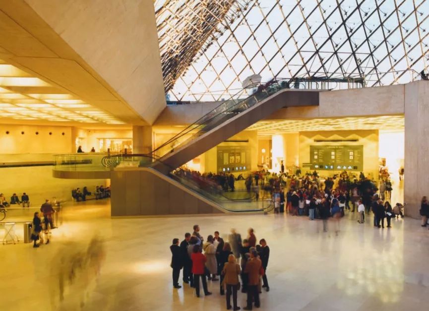 1978年在美国国家美术馆东馆的设计中,他打通了博物馆地上与地下的连接,并首次在主体建筑前放置了7个玻璃金字塔。这七个小而分散的水晶天窗为连接东西建筑的地下广场收集了足够的自然光线,这样的设计理念也延续到了卢浮宫改造计划之中。