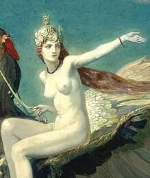 虽然邓肯的许多创作都基于苏格兰神话和凯尔特民间故事,但这一画作却是画家的独创和想象。它描绘了Heptu别离Obb城的场景,少女头戴皇冠,红发飘逸,赤身裸体如象牙白,身下坐骑可能是流行于西亚到地中海一带的传说生物格里芬,即狮鹫,它拥有狮子的身体及鹰的头、喙和翅膀,被视为强大、尊贵的象征。