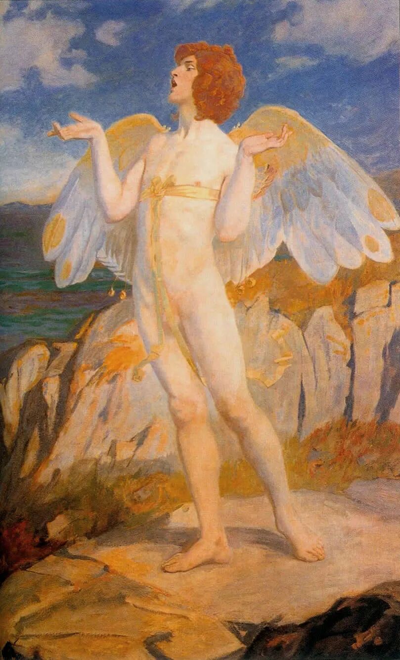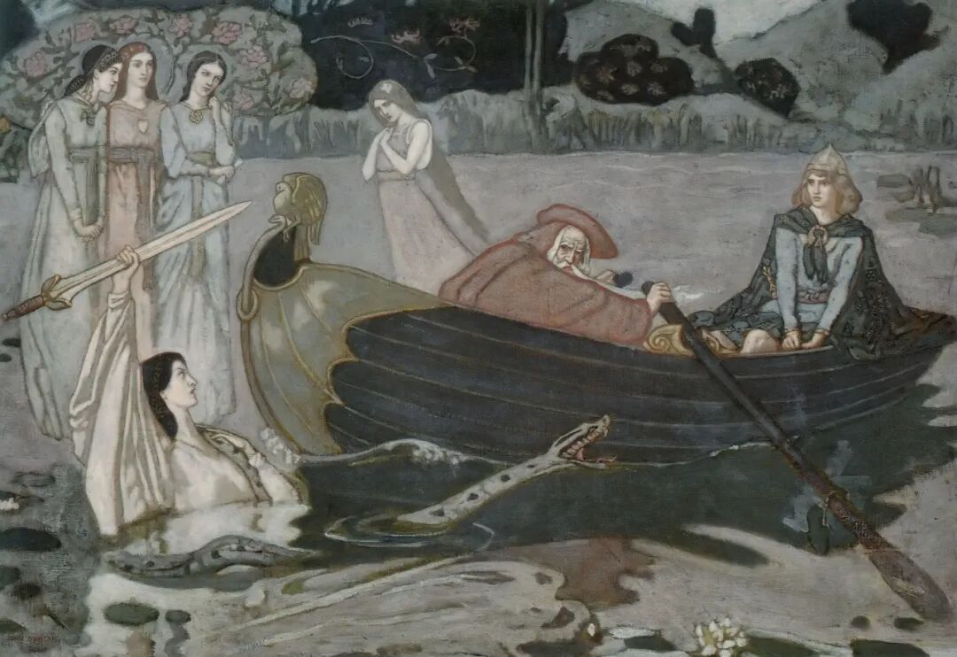 邓肯1866年生于苏格兰,是屠夫与牧民之子,但他对继承父业毫无兴趣,而是坚定走向艺术之路。他做过商业插画师,给人画过肖像和壁画,但他最重要的标签,是作为象征主义画家,绘制了许多以苏格兰神话和凯尔特民间传说为题材的作品。