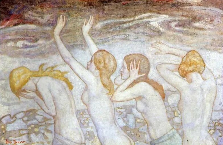 约翰·邓肯于1945年去世。那时候,世界艺术已从现代的分水岭滑向当代,神奇的是,邓肯的绘画完全看不到这种痕迹,他似乎是执着于美和神话之神秘的——当然,神话不仅于此,对经历过两次世界大战的邓肯来说,或者那里的世界才更值得留恋。