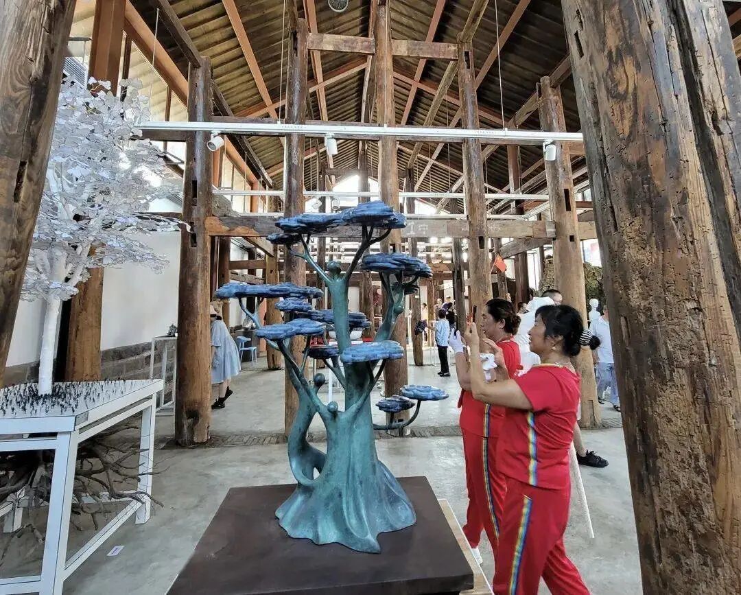 随着更新活化后的莲花穴村落走入人们的视野,各类艺术市集、活动、大赏等在此展开。2021年,艺术家们把重庆第二届雕塑大展“搬”到了莲花穴,约200多件雕塑作品展出,师生们将学术交流、艺术沙龙也搬到村里,“土气”的村落瞬间变身艺术现场。