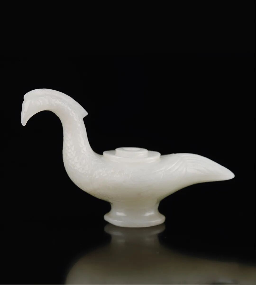 香插,又名“香托”,用来插放线香、卧香或盘香,使香不会倾倒、直接接触香炉的工具。此香插取和田玉制,温润光泽,质凝如脂,圆雕朱雀神鸟,整体造型栩栩如生。朱雀刻饰清晰,生动别致,背部为香插底托,雕琢精湛,赏心而悦目。