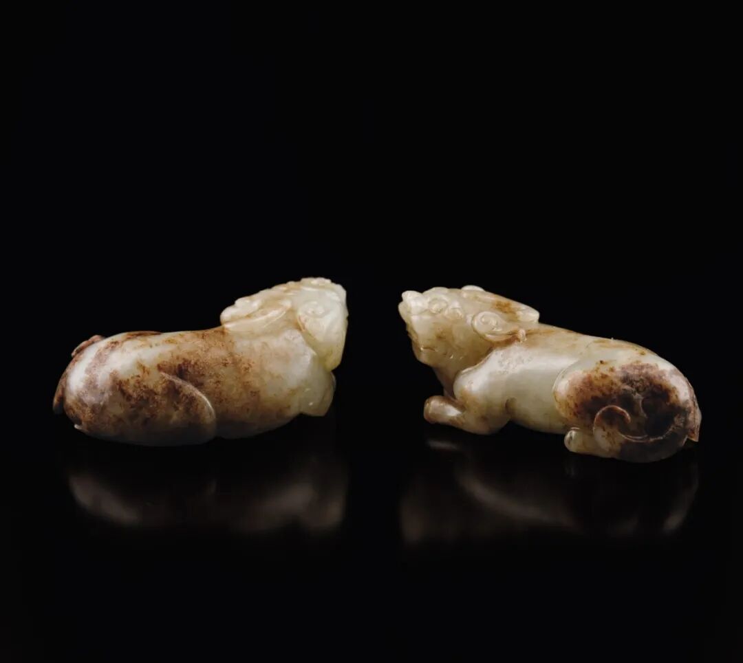 貔貅吞万物而不泄,纳四方之财。有招财、镇宅、辟邪、驱凶的寓意。此对把件玉质细腻,沁黄。雕刻生动传神,传达出貔貅动人心魄的艺术魅力,浑然天成中蕴藏吉祥之意。貔貅面部神韵灵气,感染力丰富,充满生命力。通过张弛有度、收放自如的线条勾勒与把控,将和田玉籽料油润细腻、光华内敛的表现力,发挥得淋漓尽致。