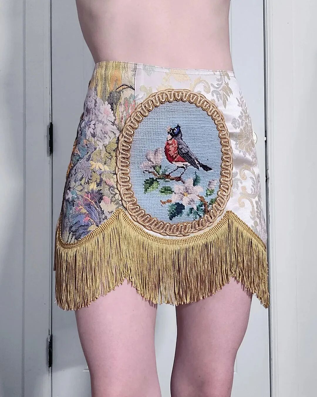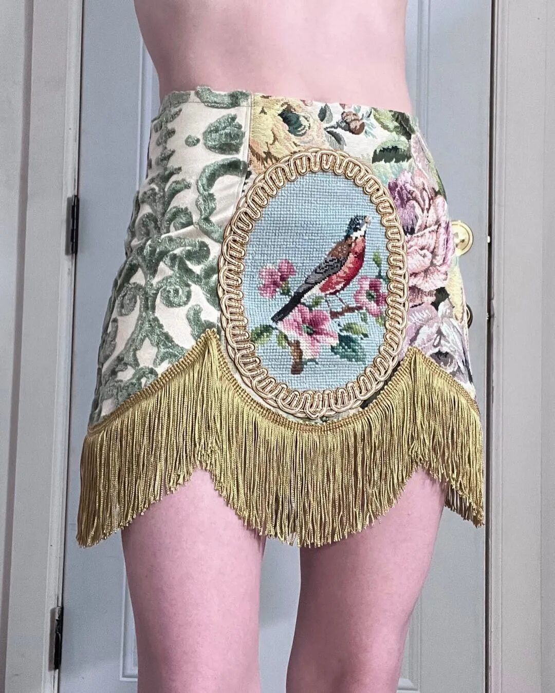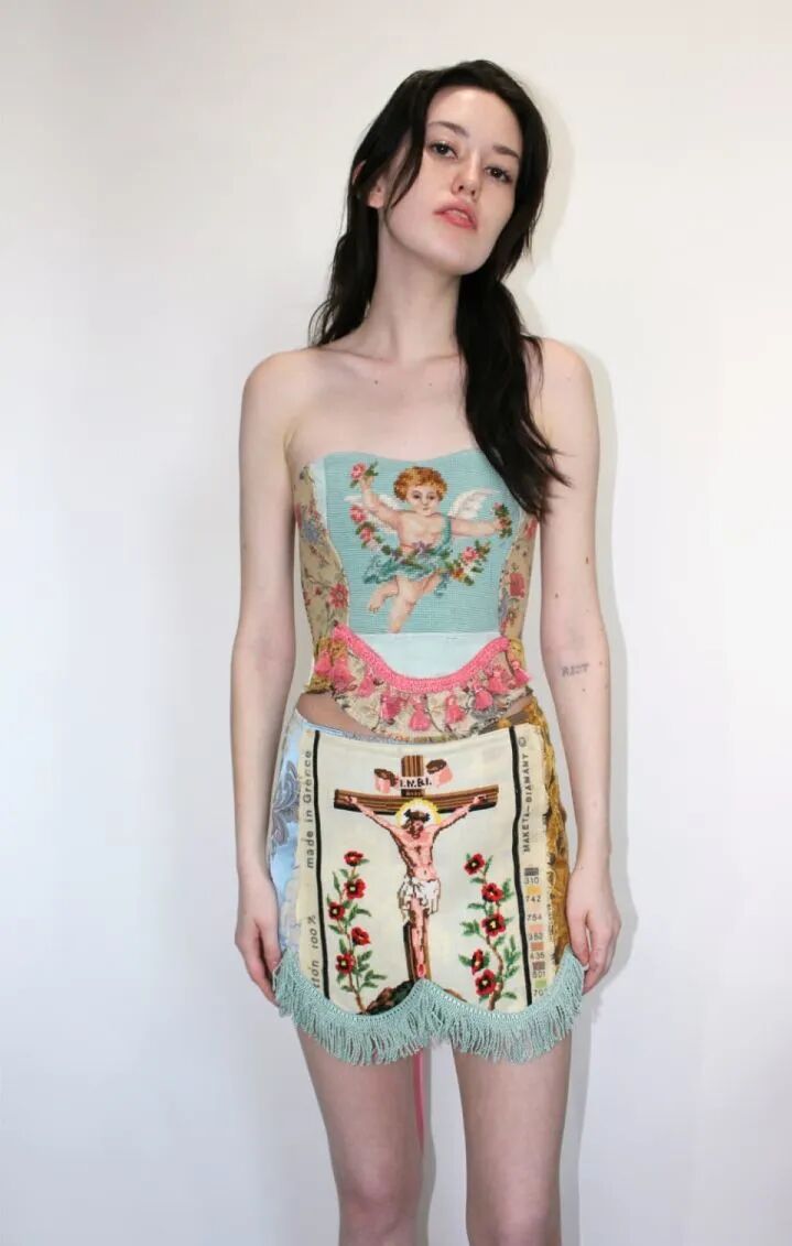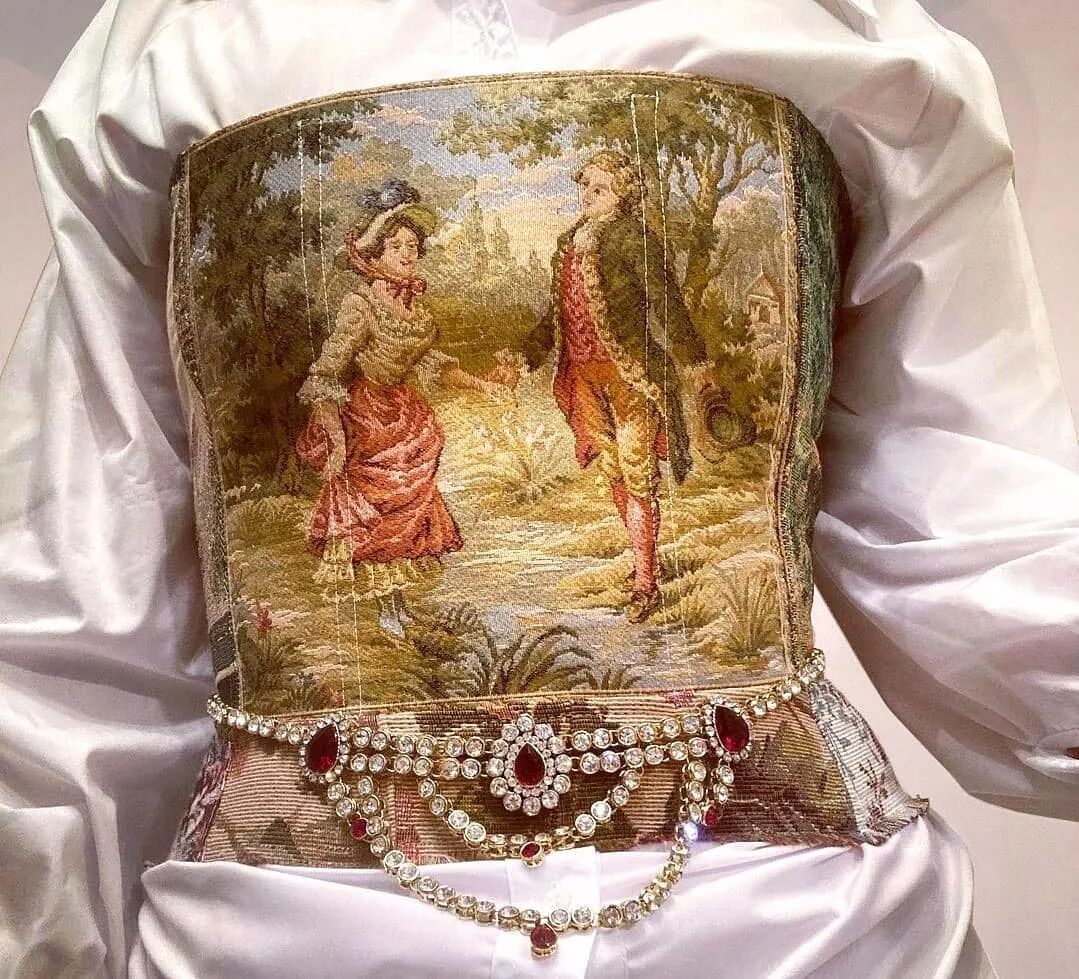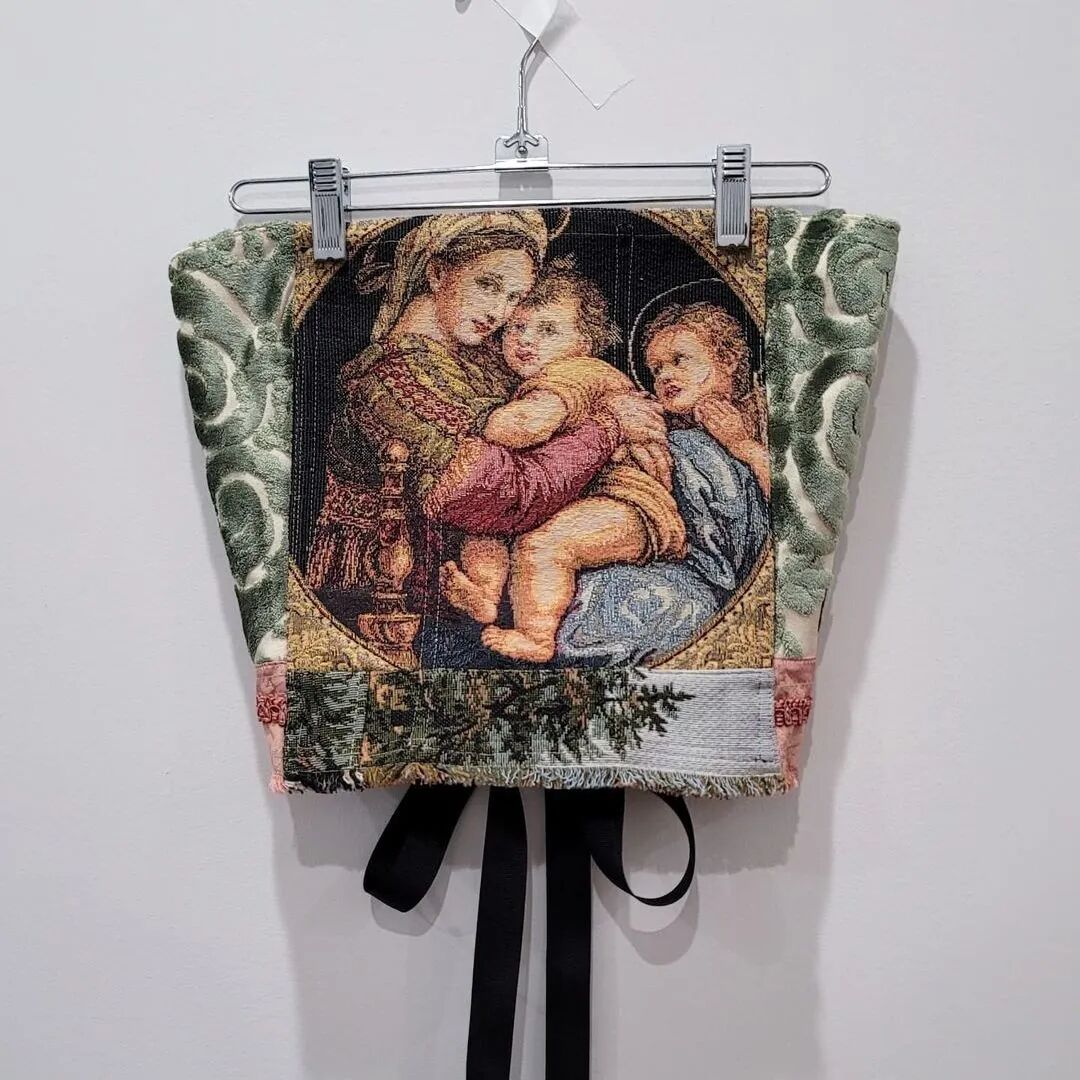 来自美国布鲁克林室内设计师Kristin Mallison,收集来自世界各地的复古挂毯和室内装饰面料,将它们制作成一件件紧身胸衣和裙子。