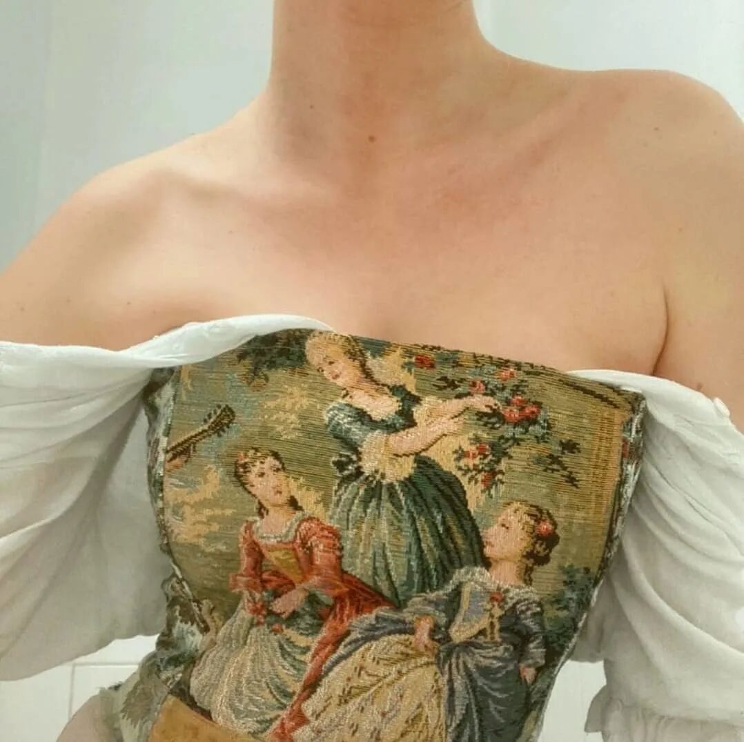 Kristin Mallison作品基于对过去物品的重新发现,重新诠释洛可可家具的典型纹理,将其转化为现代服装,并且绝对没有两件紧身胸衣裙子是相同的。花卉提花面料则是通过古董拍卖、跳蚤市场购买等方式,从老式椅子、沙发靠垫和中世纪的抱枕中精心挑选出来,有着一股优雅复古的韵味,为真正独特和原创的紧身胸衣和复古裙子赋予了生命。
