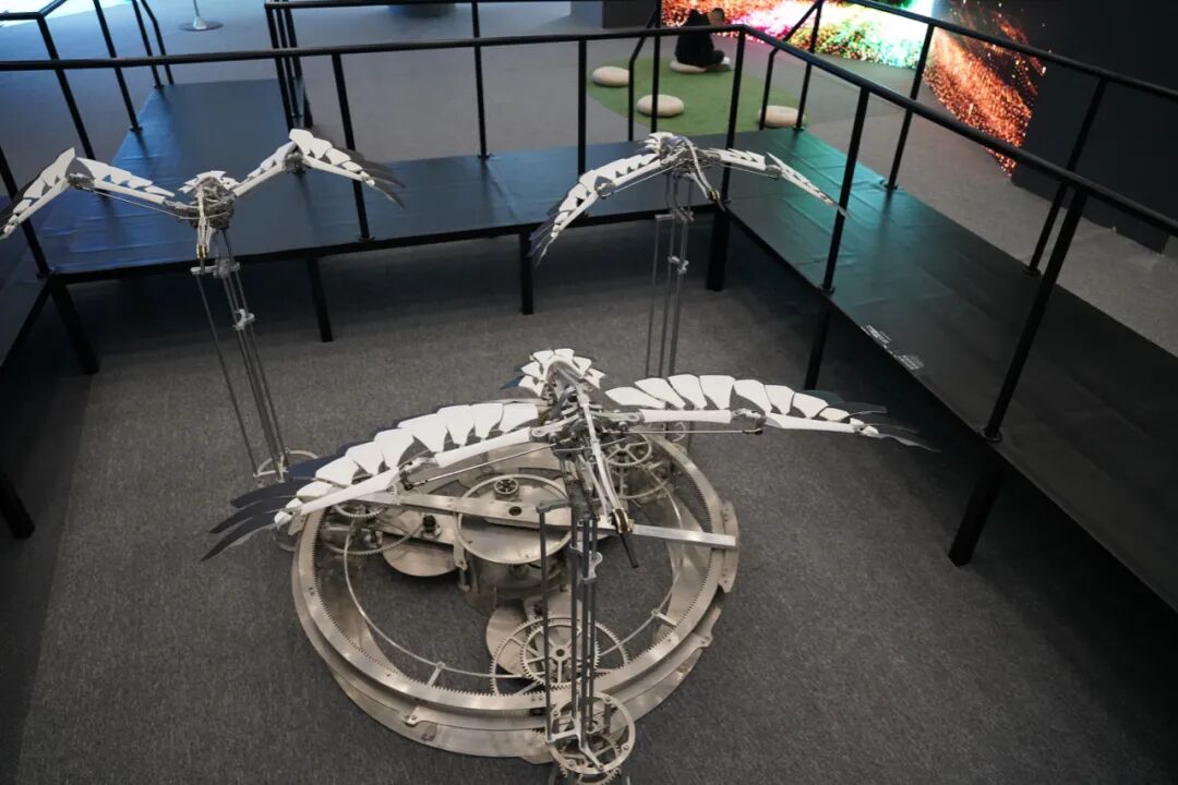作品介绍:《候鸟》是大型机械鸟装置,灵感来自大自然的奇迹。随着黑夜愈长,候鸟和暖丰饶的居所渐入寒冬,因而需要越洋飞行一万公里以上,迁徙至另一容身之处。候鸟采用“V”形的飞行队形,藉以减低飞越汪洋时所需的能量。