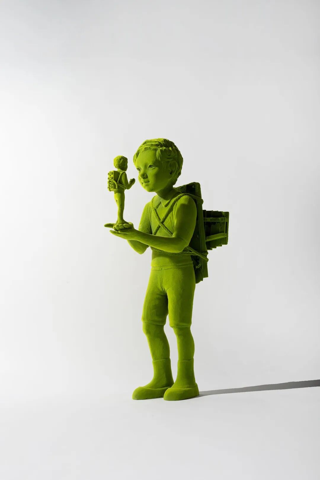 从在迈阿密设计展上展示的“休息的巨人女孩”和“思想家”等久坐不动的孩子,到“医生”、“幼儿园老师”、“音乐家”、“植物学家”和“伪装宇航员”等更“权威”的角色,对于更具象征意义的人物“Jeanne d'Arc(圣女贞德)”和“好牧羊人”,每个雕塑都暗示着不同的背景故事和成年仪式。
