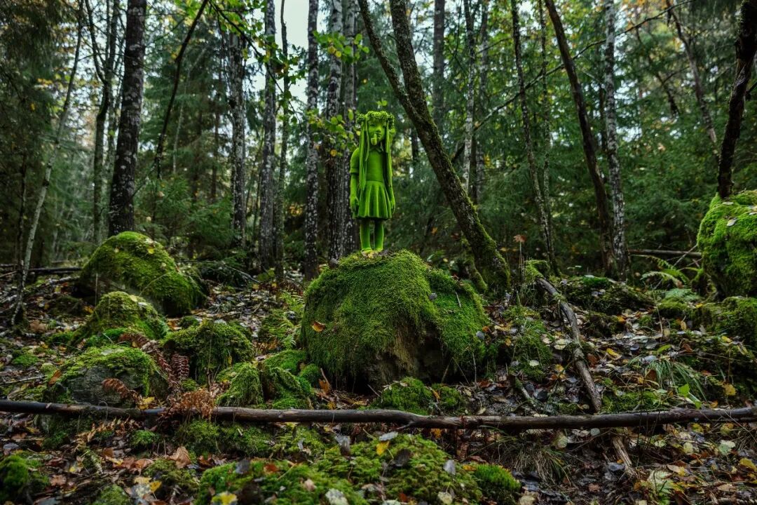 Simonsson 说:“苔绿色的人物完美地融入了周围的自然环境,就像柔软的苔藓地毯覆盖在地面、岩石和树干上,起到一种保护作用”。