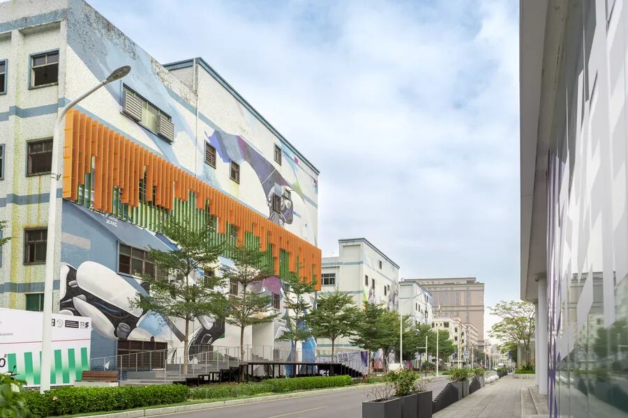此次龙华分展场选址在小镇上闲置的原石凹第二工业园区和它紧靠的浪静路上。石凹第二工业园区属村集体用地,建成后以电子加工厂为主,现处于工厂迁移、空间闲置状态,后续将进行相关升级改造,这也与龙华区处于城市空间形态塑造期的现状相契合。而浪静路则能串联起大浪时尚小镇不同功能区域,如时尚产业园、服装品牌门店及工业园区,是双年展连接融合在地不同空间的重要节点。