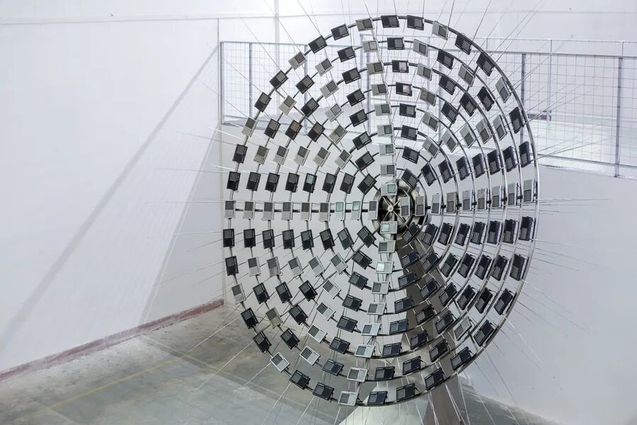 《克里斯特尔的新衣2.0》,殷晖,水晶、日常生活物、石凹第二工业区内的工业垃圾(鱼线、铝箔排风管、塑料花洒、洗眼器瓶子、纸箱扎带、锌丝、电子芯片、各类包装盒等)、廉价装饰材料,2022
