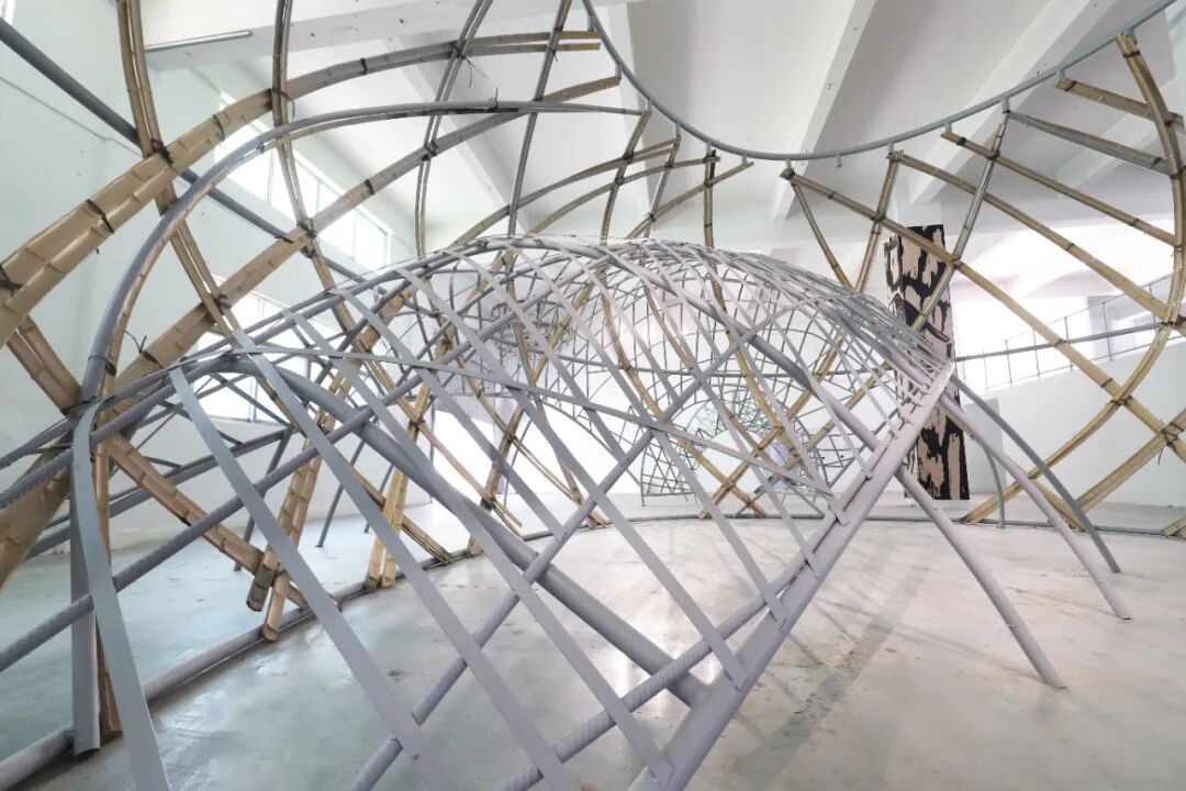 《海市蜃楼》,梁绍基,装置(螺纹钢、竹、渔网残片),2022