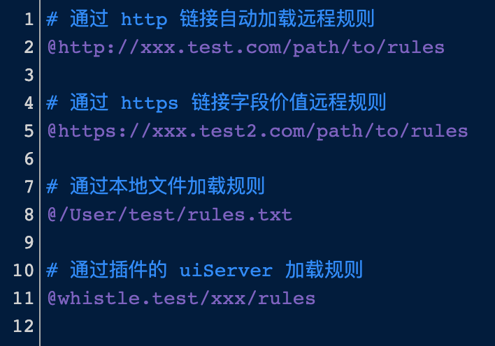 界面或插件rules.txt通过@url方式引入的远程规则(要单独一行,Whistle会定时更新远程规则)。
