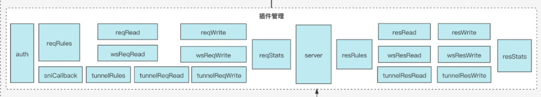 确保所有功能点都可扩展,如:请求鉴权、生成证书、获取抓包、设置规则、请求处理等。