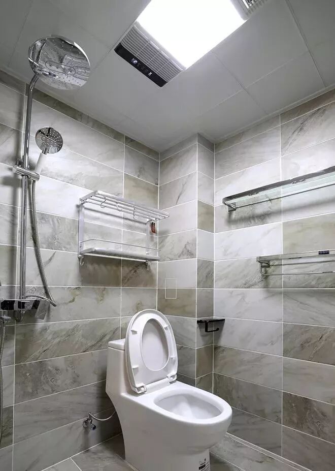 卫生间仿天然石材的瓷砖,墙地通铺倒也有一种排列组合的趣味,时尚大方,减少了因面积小而带来的局促感。