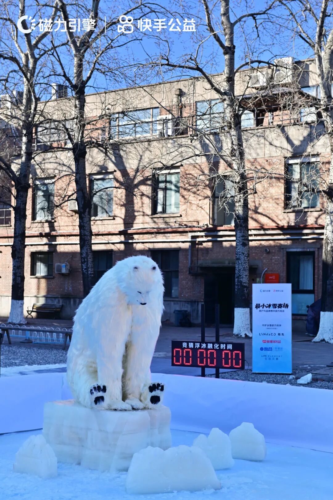 线下,磁力引擎在北京798艺术中心发起了一场“最小冰雪赛场”24小时的浮冰融化直播。