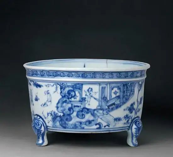 博物馆收藏明弘治青花三足炉文物平等青发色