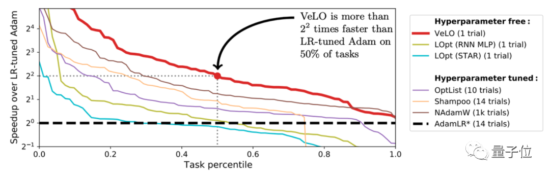 结果表明,VeLO在83个任务上的加速效果超过了一系列当前已有的优化器。