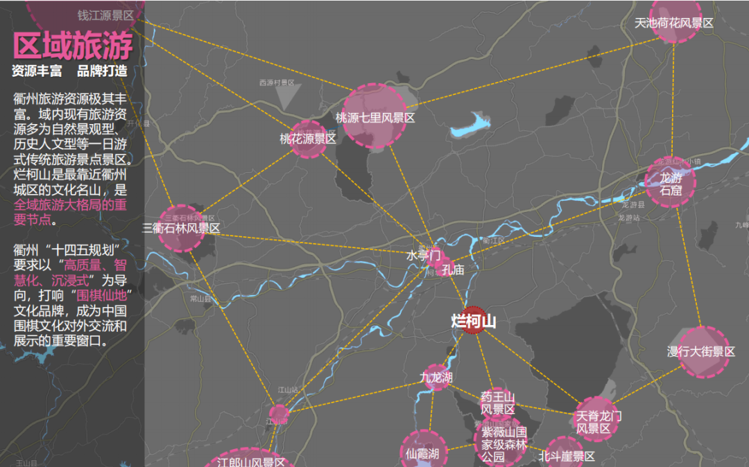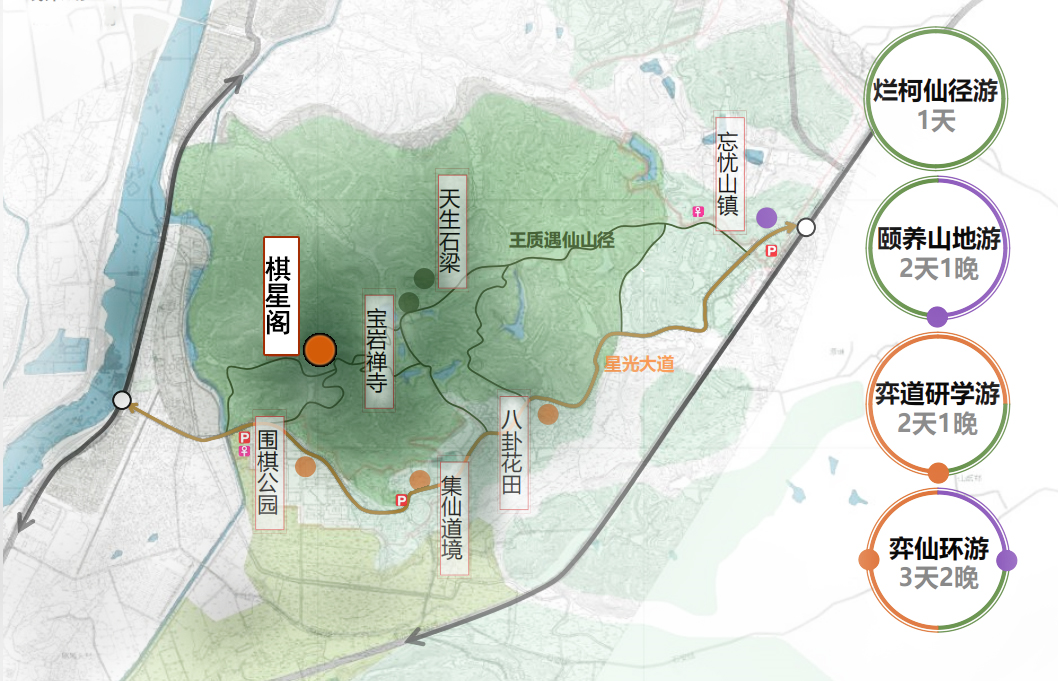 衢州旅游资源极其丰富。域内现有旅游资源多为自然景观型、历史人文型等一日游式传统旅游景点景区。烂柯山是最靠近衢州城区的文化名山,是全域旅游大格局的重要节点,也是衢州打造世界围棋文化交流园的重要坐标。
