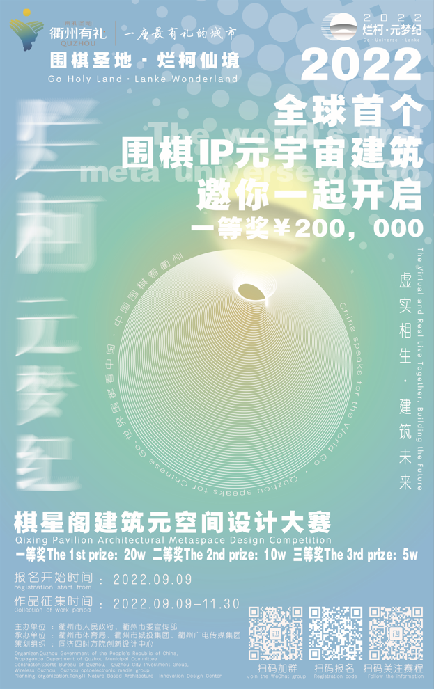 当传统遇见未来、当文化遇见数字、当烂柯遇见元宇宙······又将碰撞出怎样的创意火花?这一次我们把目光投向中国衢州·世界围棋文化园,通过发起【烂柯元梦纪—棋星阁建筑设计元空间大赛】,诚邀社会各界人士一同共创“围棋圣地·烂柯仙境”与“元宇宙”之间的“棋妙”世界。