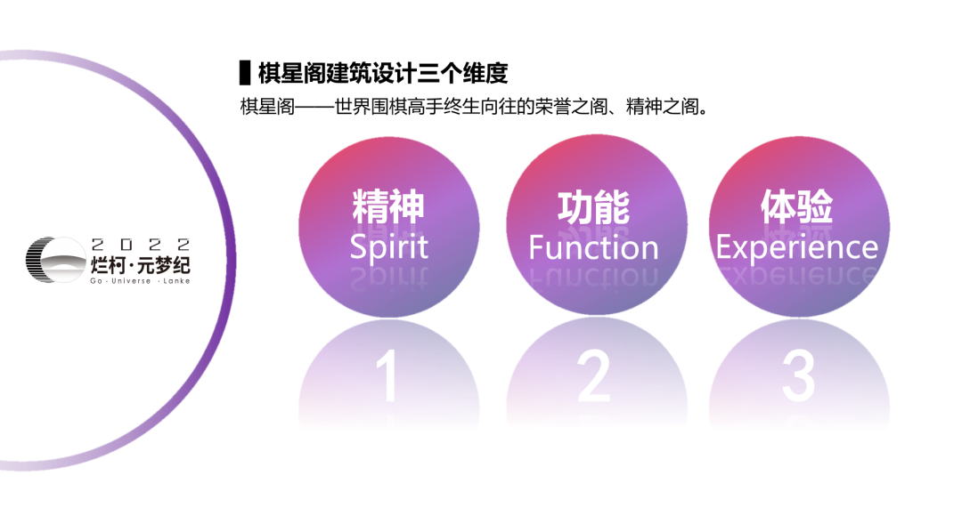 Our objectives are to create the Hall of Honor that the world's top Go players yearn for all their lives through design; to create the pilgrimage pavilion that the world's Go enthusiasts yearn for through creativity; and to create a spiritual pavilion in the world holy land of Go and the Lanke Wonderland through culture. Through the architectural design of the "real space" and "virtual space" of Qixing Pavilion, our goal is to explore the innovative mode of symbiosis between the virtual and the real in the architectural space.