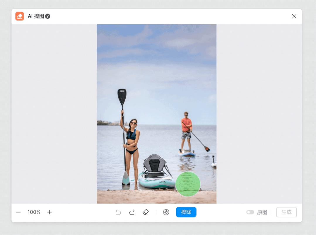 看名字就知道,能快速擦除图中无用元素的插件。操作也很简单,涂抹后稍等几秒就能擦除完成。