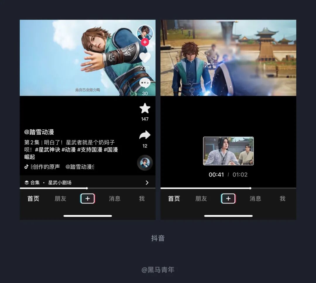 抖音的进度条设计也在不断的探索新的体验,最近更新的版本中在拖动进度条时,会隐藏其他附属的功能,让界面显得更加简洁。拖动进度条时也会实时预览显示视频画面,辅助用户进行精准的内容确定,提高用户的操作效率。