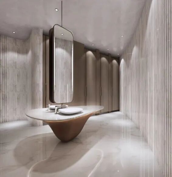公共卫生间,除了满足常规功能洗漱、照镜理容功能外。还需要考虑抽纸盒、皂液器、垃圾篓是设置在哪个位置?以及其对应的容纳空间