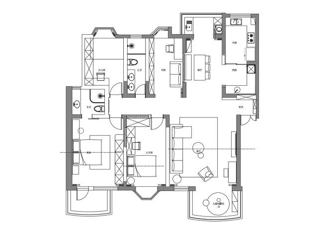客厅应屋主要求,更多的留给在成长的孩子使用。