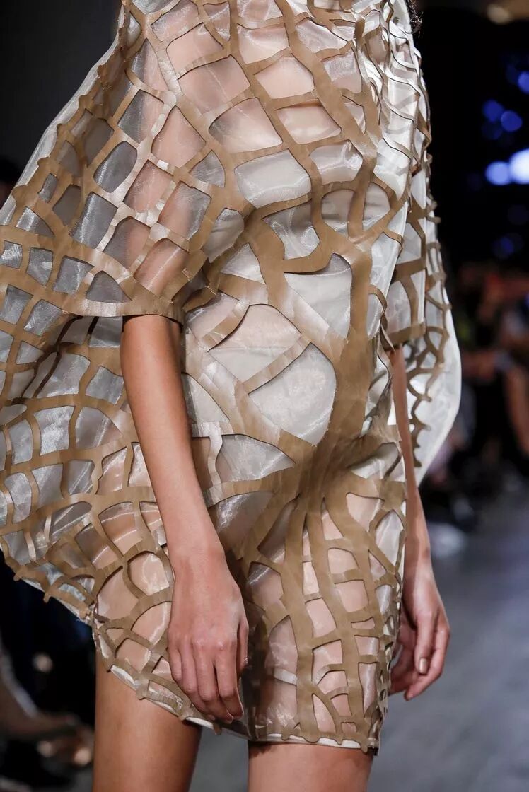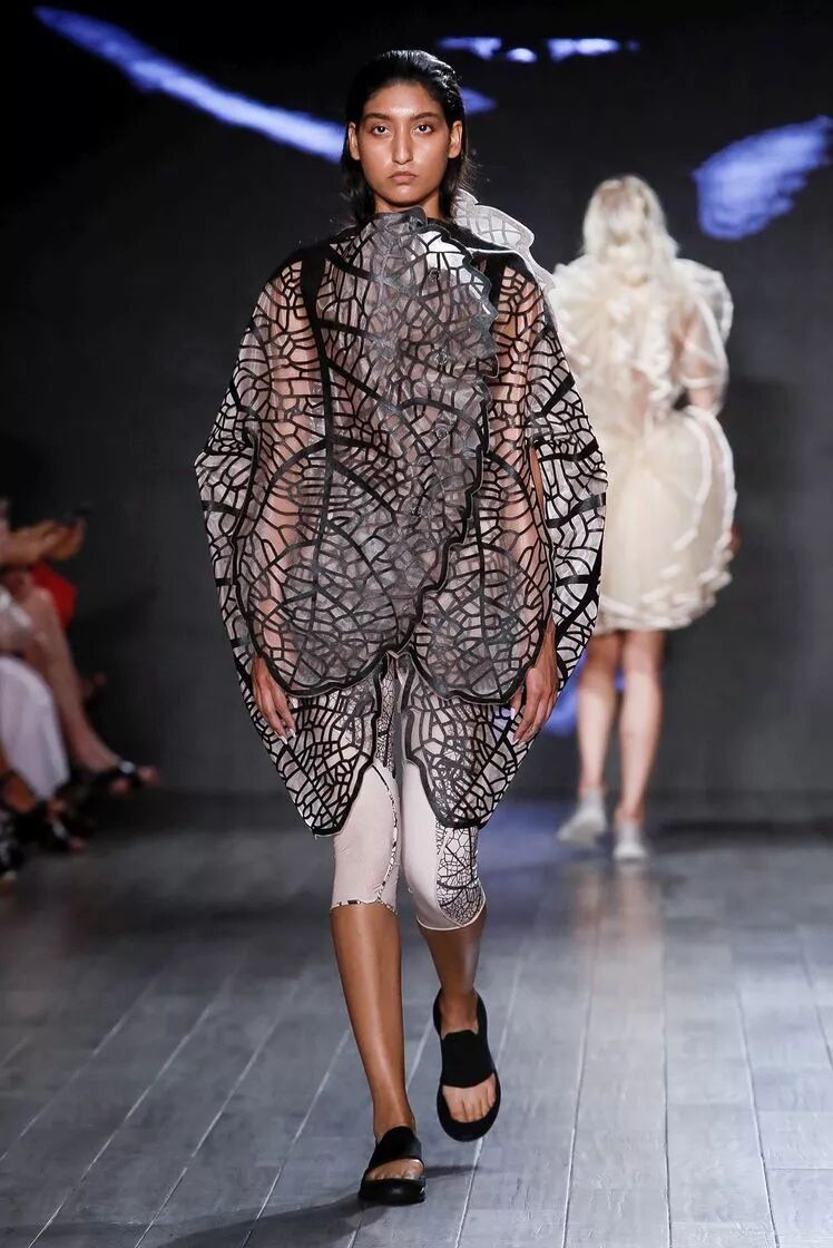 本季three easfour与Stratasys公司的3D打印技术,展示了直接在织物上进行3D打印的技术,也是对于这项技术的新突破!这种3D打印技术可以让设计师捕捉到创意视觉的细微差别。他们可以考虑如何将3D打印技术与纺织材料结合起来,将两者的优点发挥到极致,而不是考虑如何用3D打印技术取代纺织材料。