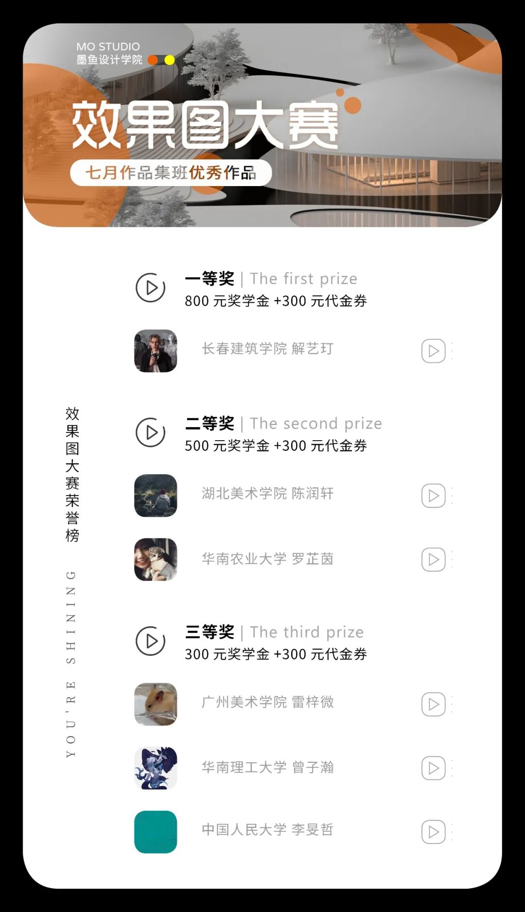 本获奖榜单以部分学员的其中一张优秀效果图作业为评选依据,由公众线上投票数量选出为准。