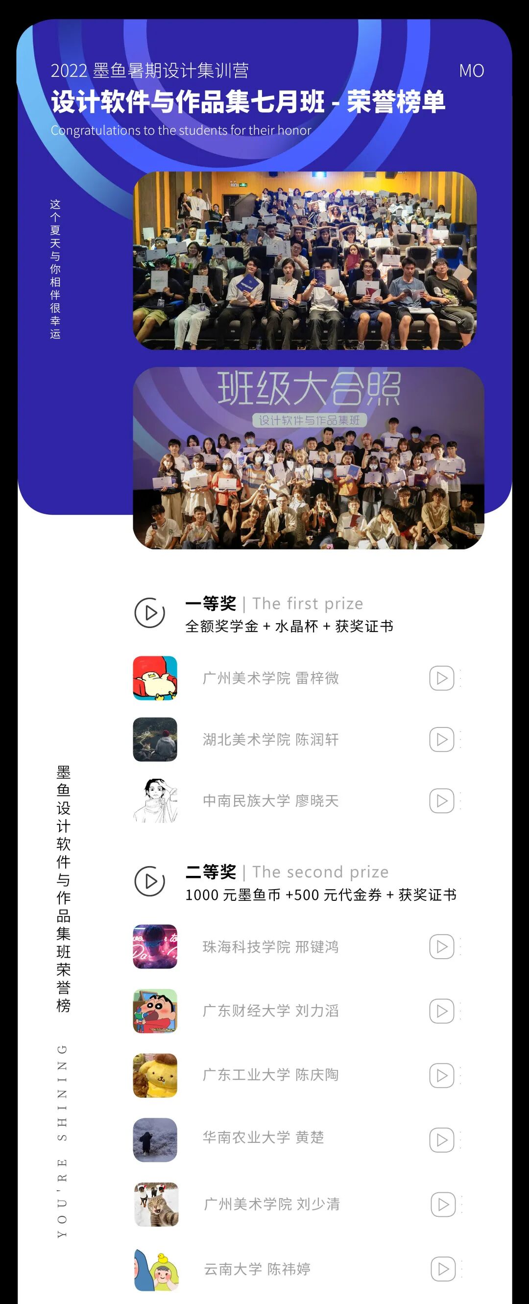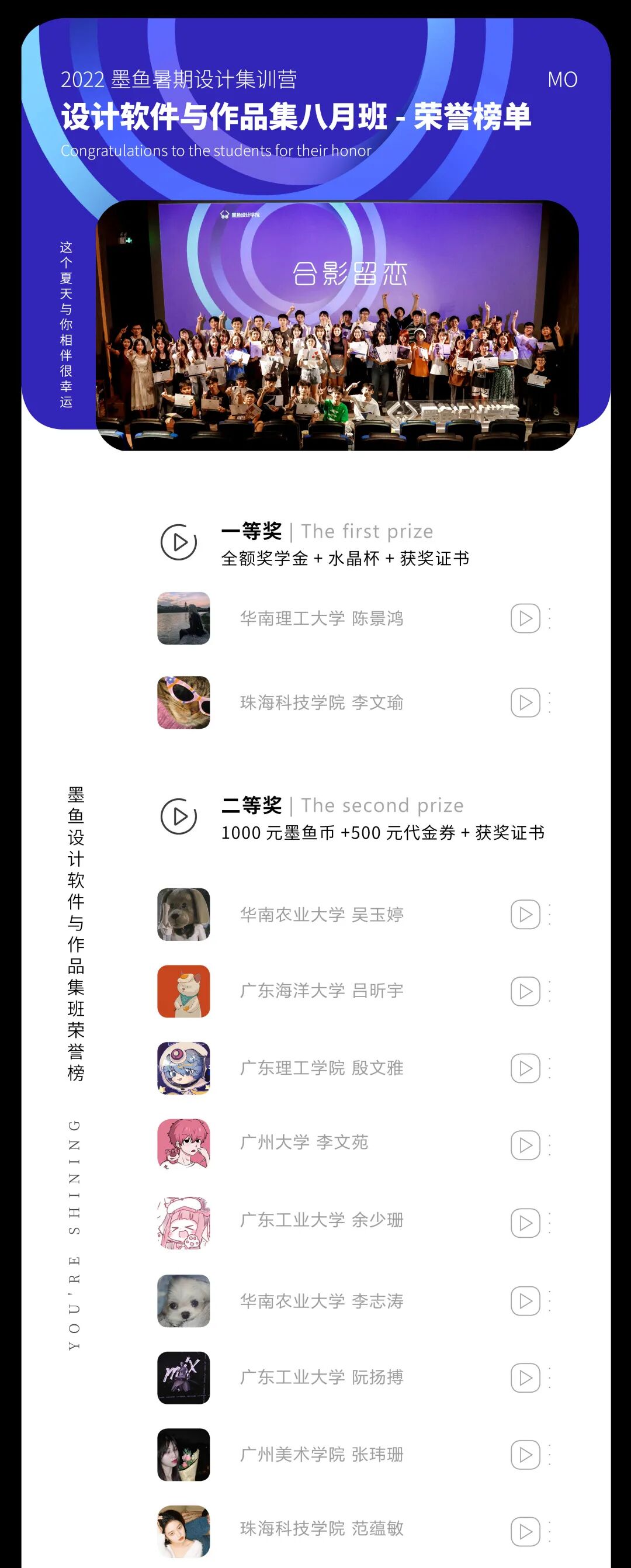 本获奖榜单以集训营期间综合学习表现为依据,