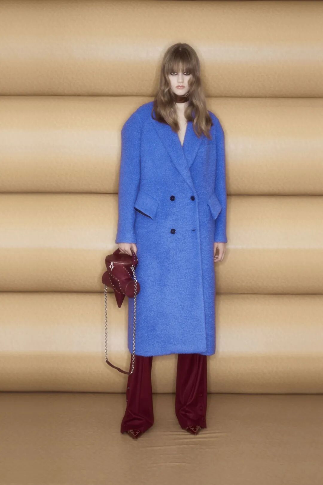 兔子的元素也由此贯穿整个系列,以印花、提花的形式出现在服装上,又或者制作成玩偶,被模特抱在手中。模特们血红的双眼,同样是对兔子形象神来一笔的“拟人”处理。