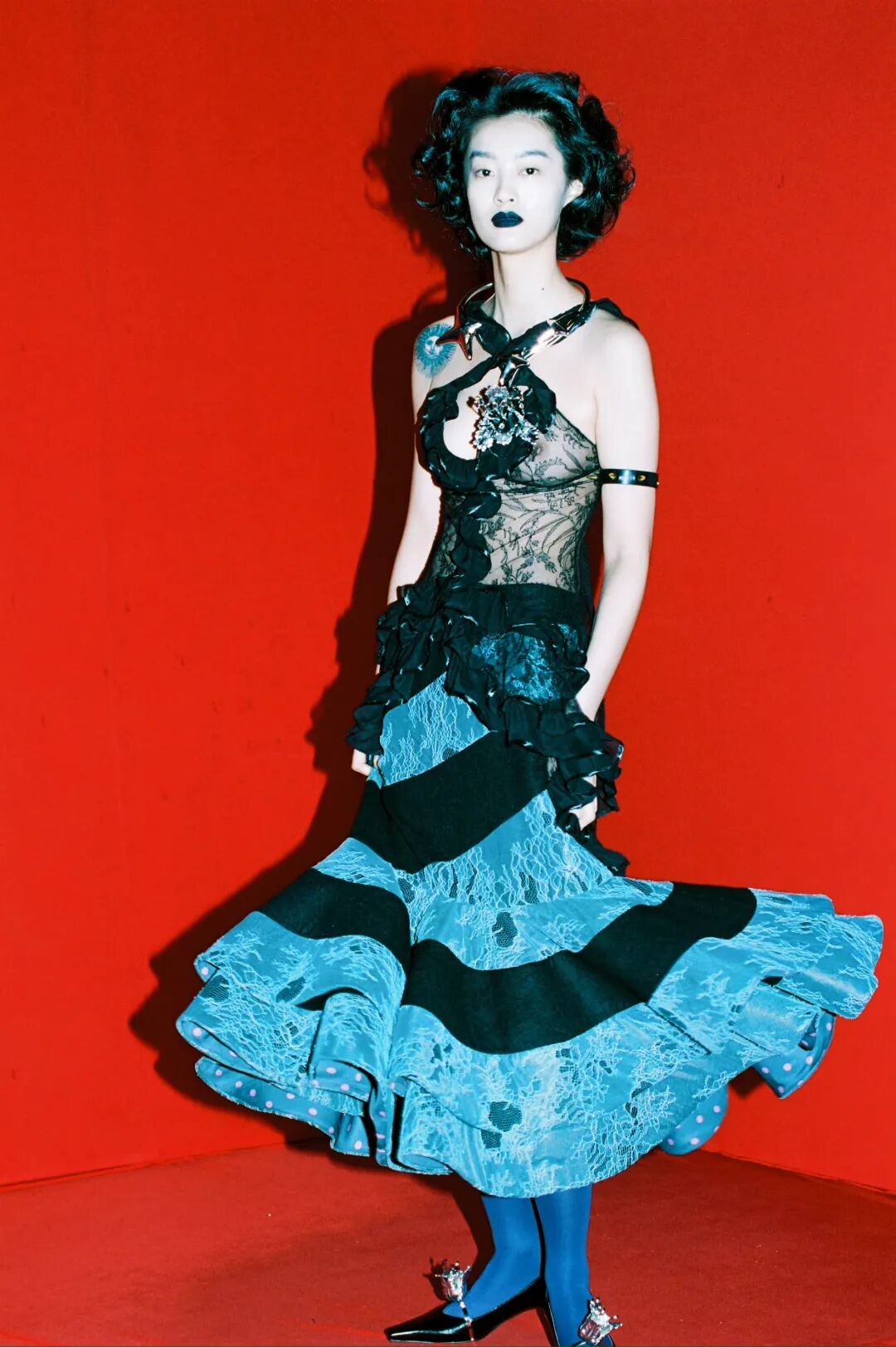 故事化、氛围化、场景感的时装呈现,正是Louis ShengtaoChen区别于其他独立设计师的地方,其还搭配了各种有趣的组合:蕾丝面料的使用,大胆的色彩冲撞,可爱浪漫的印花,过膝裙、西装外套、修身连身裙…