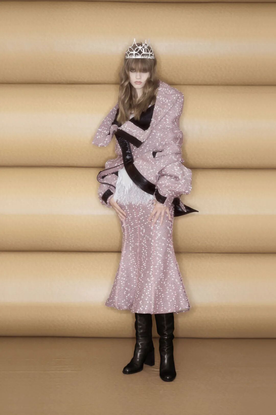 Louis 通过实验性的设计手法,在服装中表达了许多的反差与冲突,他在旧物中寻找精致,在夸张中表现趣味。他不认为时尚是橱窗中的,相反触手可及的感觉更加可贵。