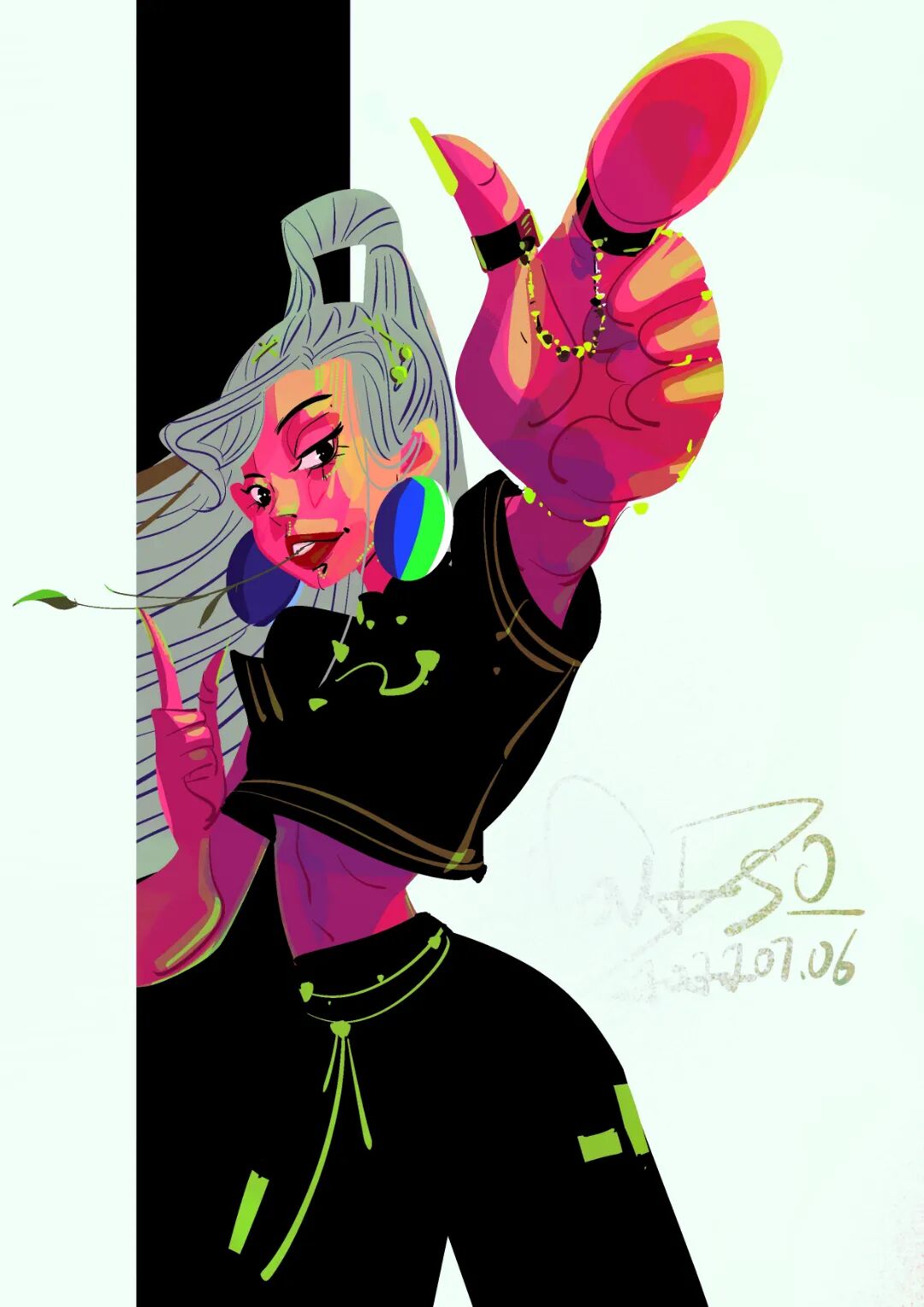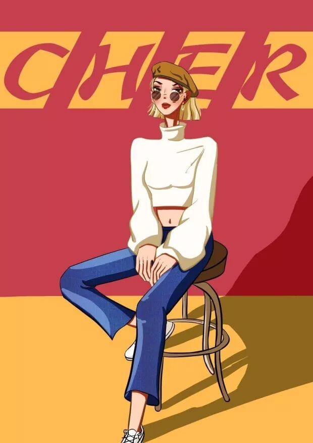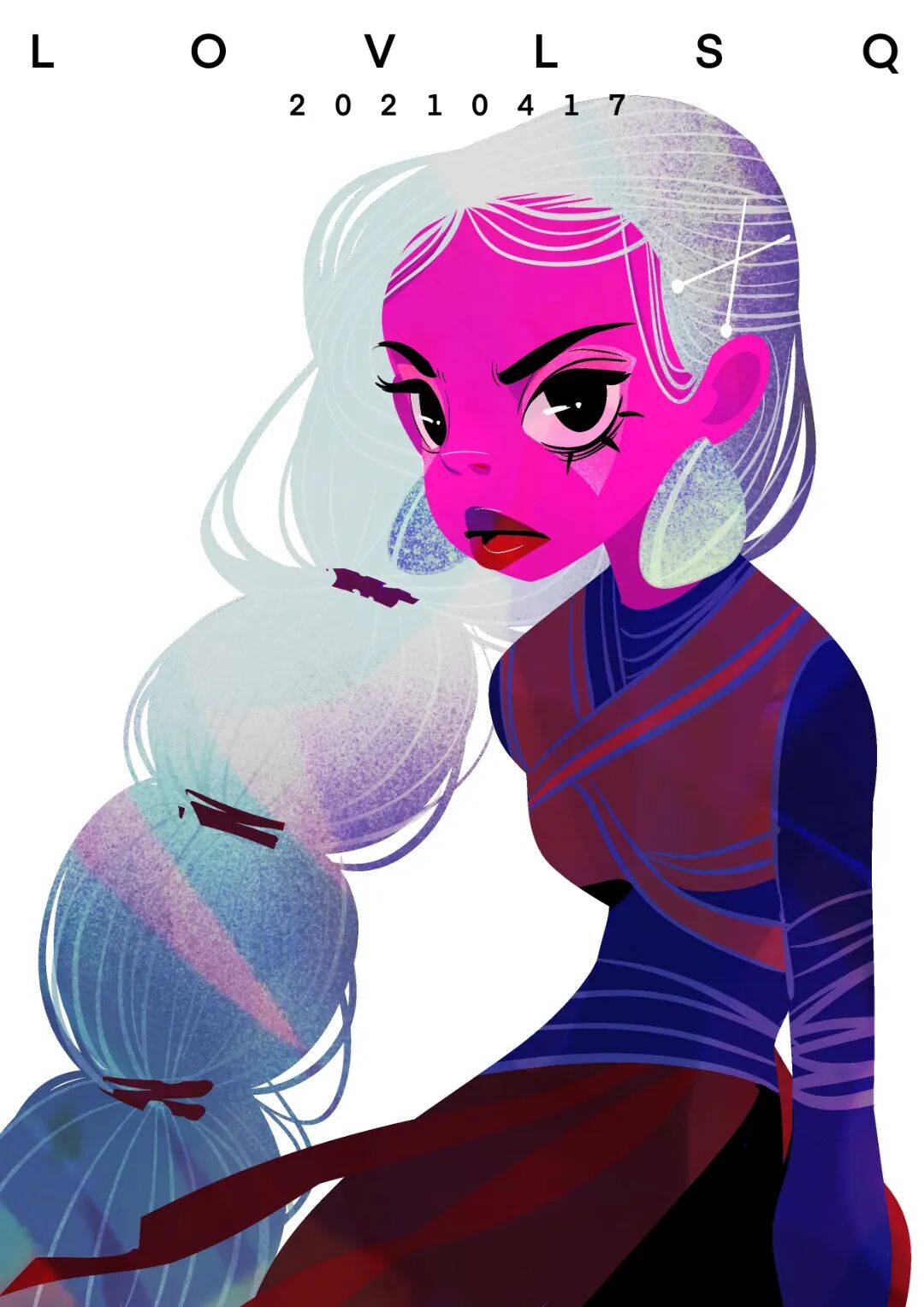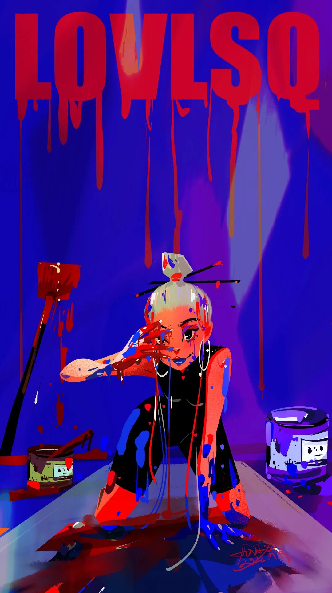 LOVLSQ的欧美风格,正是以扁平表现手法呈现,由大色块构成,造型几何化,外轮廓光滑,视觉效果非常有冲击力。
