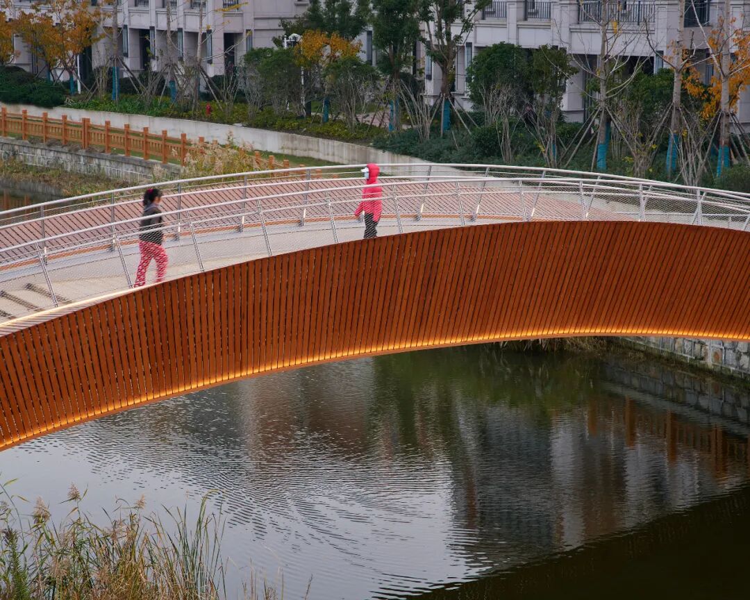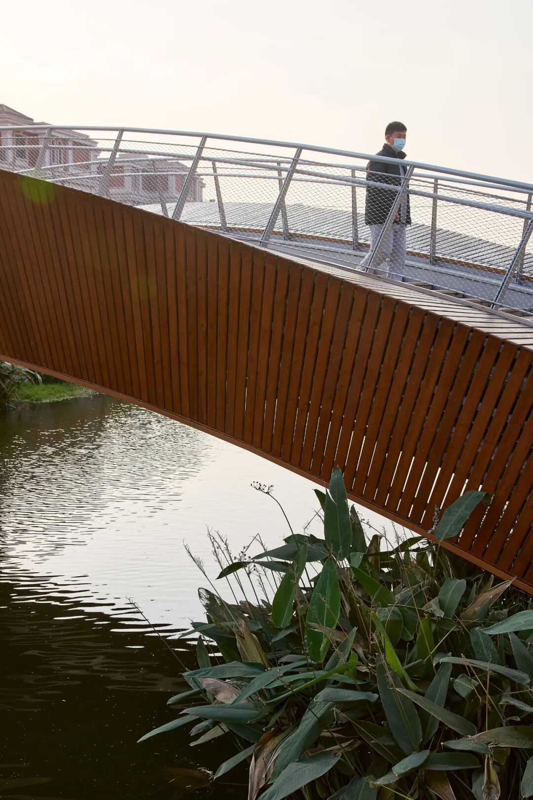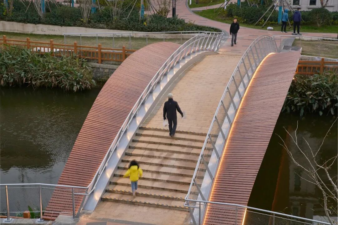 改造精打细算地实现了便民步行桥的视觉升级和功能优化,为自然生态的社区环境增添了一份朴实的浪漫。