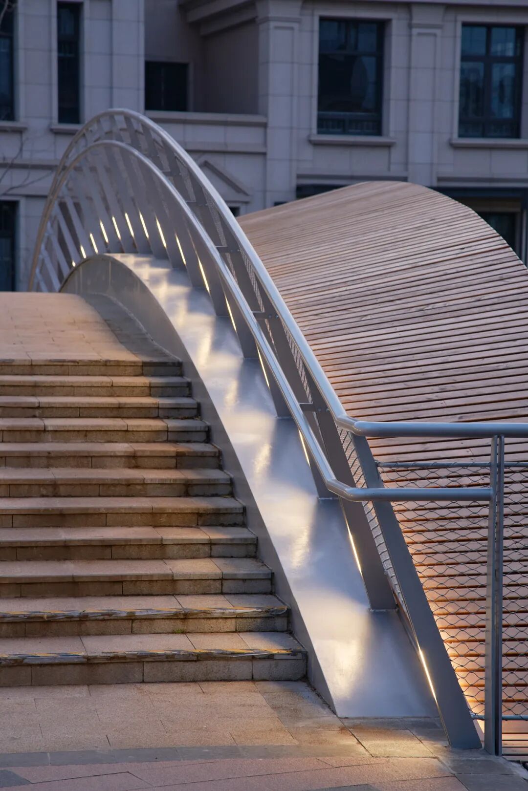 设计以一叶扁舟为概念,改造后的便民桥犹如一只小船飘荡在河面,让人联想起“满船清梦压星河”的浪漫诗句。