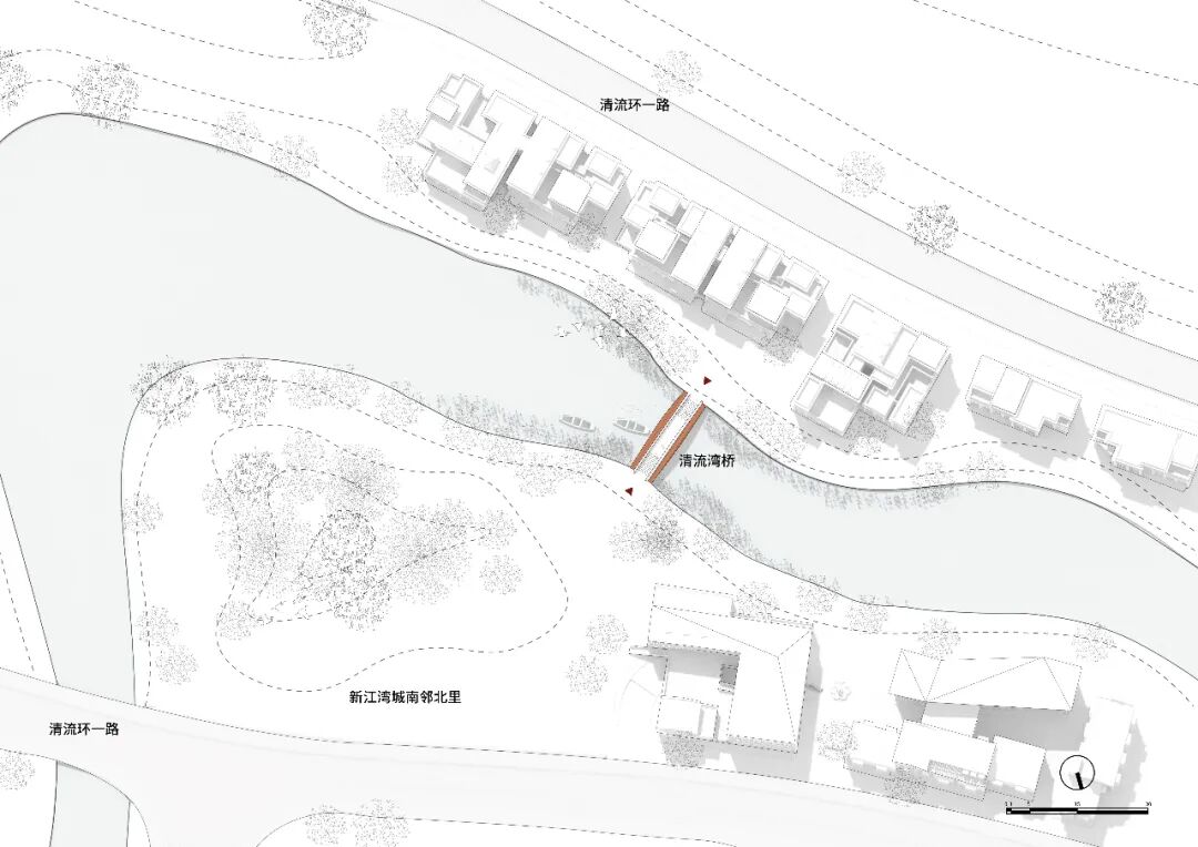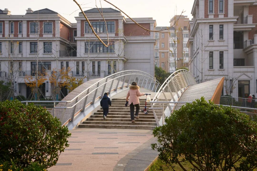 位于上海中心城区东北部的新江湾城社区有着极佳的自然地理环境,植被丰茂,水体环绕,改造的对象就是位于新江湾城社区邻里中心旁的两座便民步行桥。