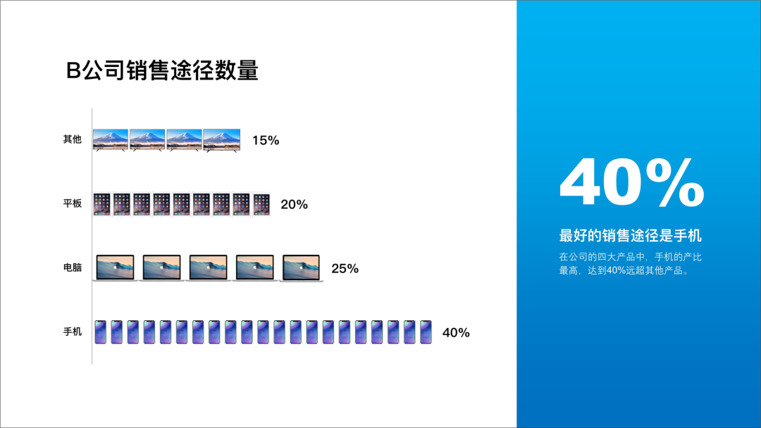创意展现这里我总结了4点:图形结合、实物图片结合、三维旋转、添加动画。