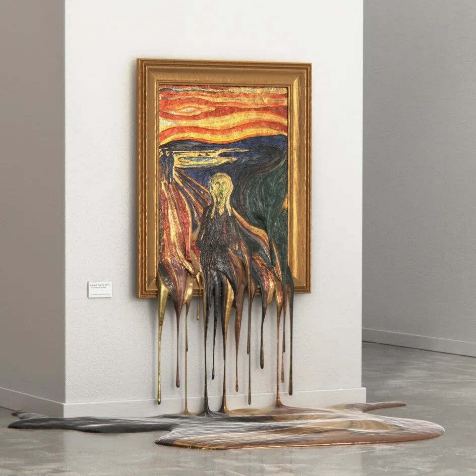 Alper Dostal创作了一系列名为“热门展览”的数字可视化作品,想象并体现了艺术家、策展人、艺术爱好者最糟糕的噩梦:最受认可的艺术史上的作品开始融化。这个场景除了捕捉带有一丝幽默感的超现实场景外,还旨在提高人们对气候变化的认识。