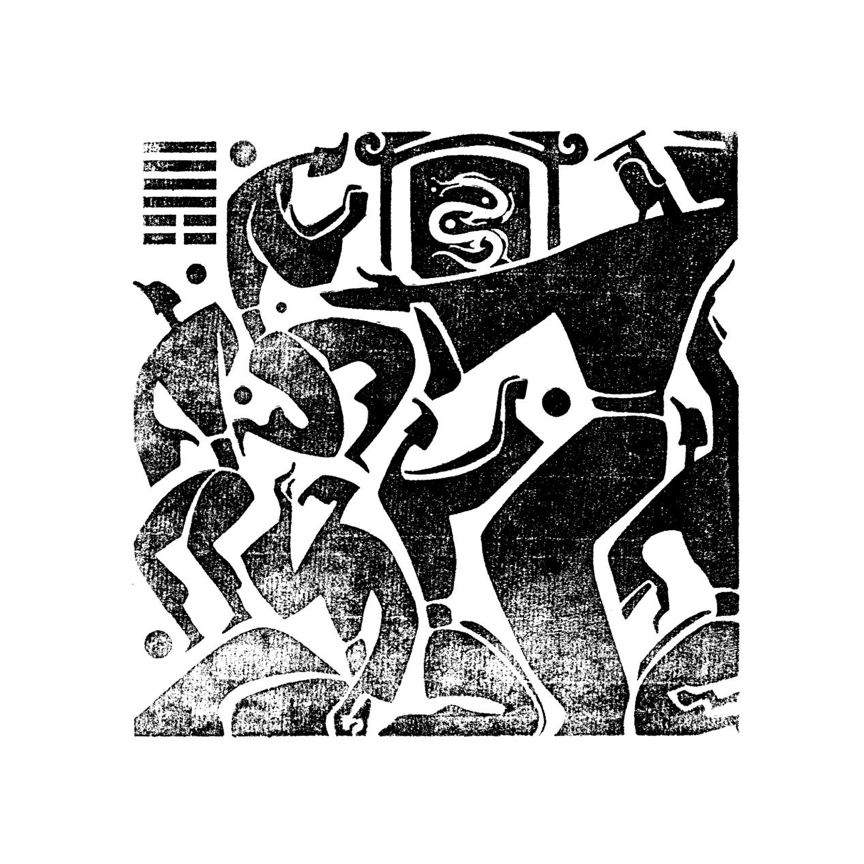 在创作手法上,这组《六十四卦图》借鉴了汉画像石的艺术形式,即围绕着同一主题安排内容,以粗犷的外形和夸张的动势,把不同时位的物象纳于一个场面之中,并强调出其最具代表性的情节和片段,简洁集中的去表达主题。