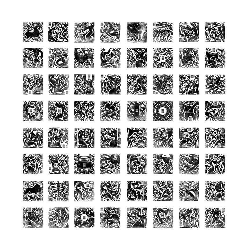 《易经64卦图》 油墨拓印