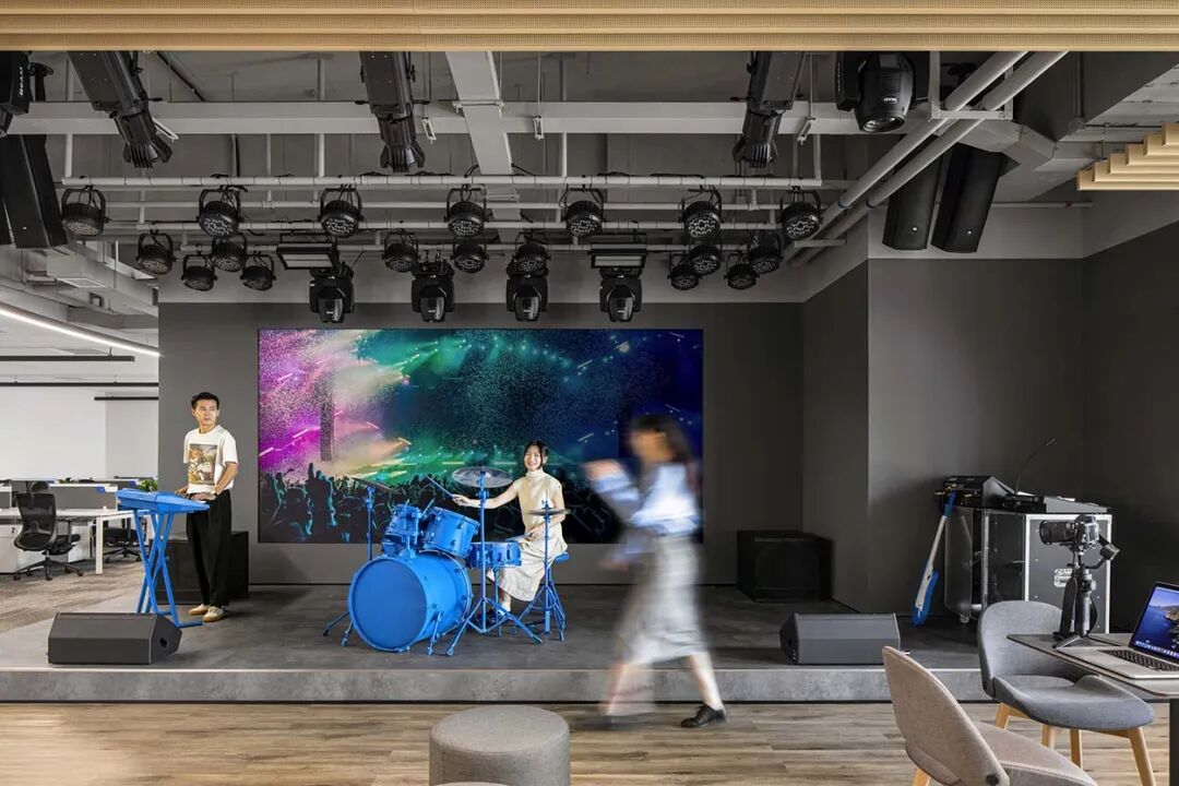 你体会过在办公室看现场演出的快乐吗?为了给员工带来源源不断的创新动力,一系列休闲娱乐空间为员工的身心健康而打造。