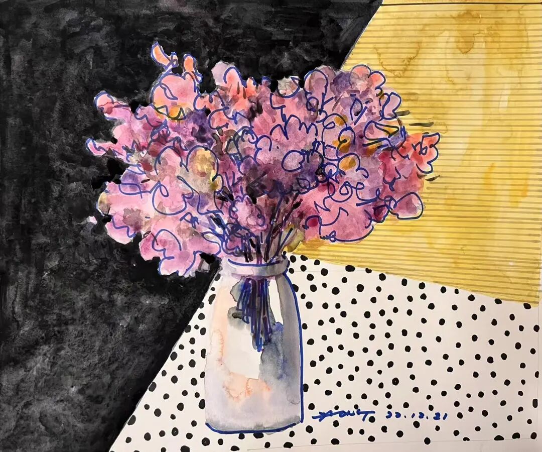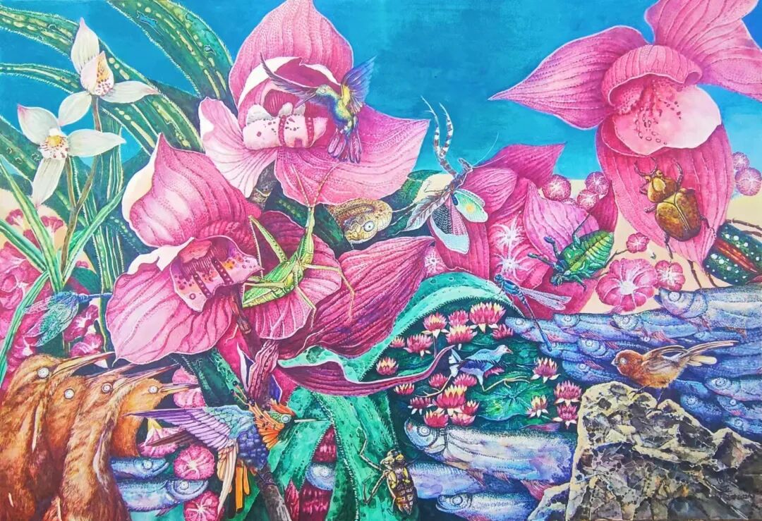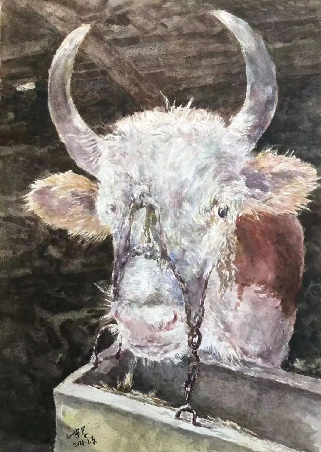 林海涵《愿做一只愛吃黄花菜的牛》水彩 42x27cm 福建莆田