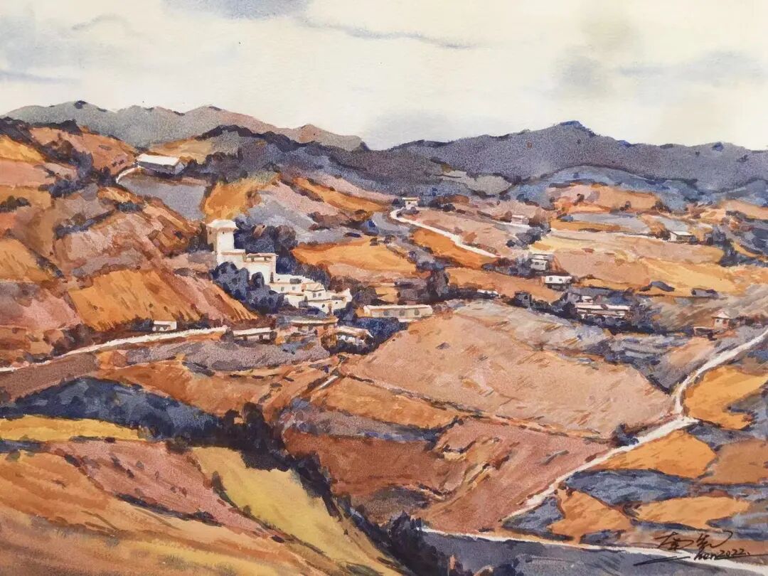 吴昌武《希望的田野》水彩 27x39cm 贵州