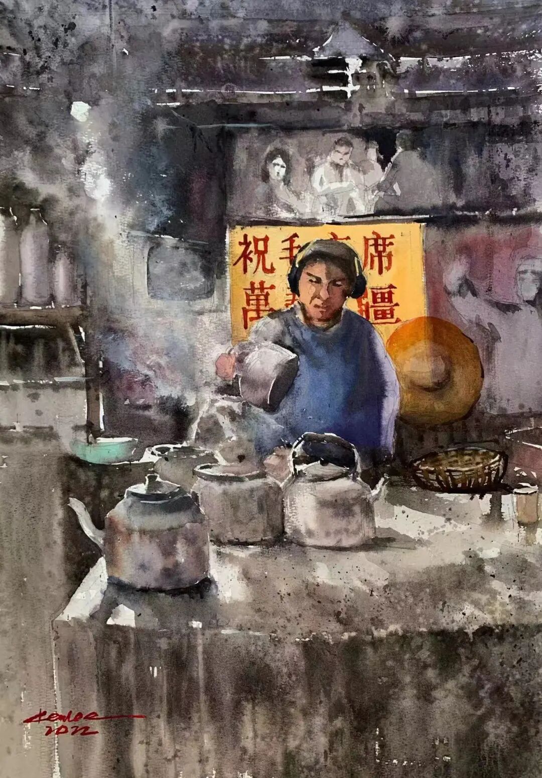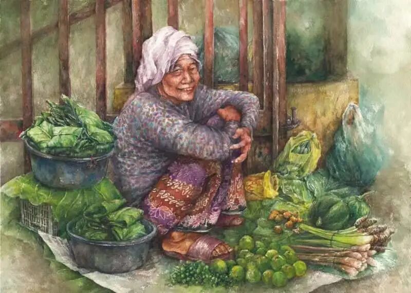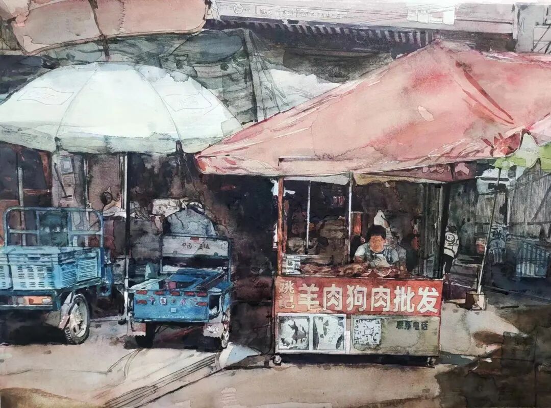 陈俏绫《传统市集一角》水彩 38x53cm 马来西亚沙巴