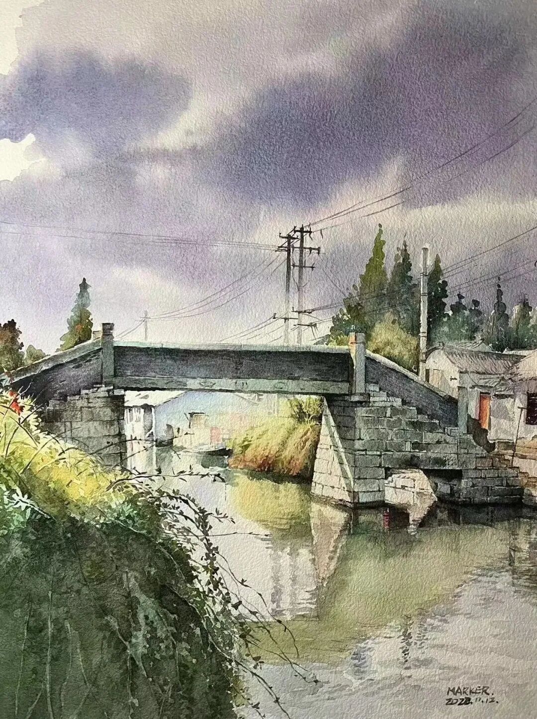 馬福寶《古鎮午後》水彩 41Ⅹ31cm 上海